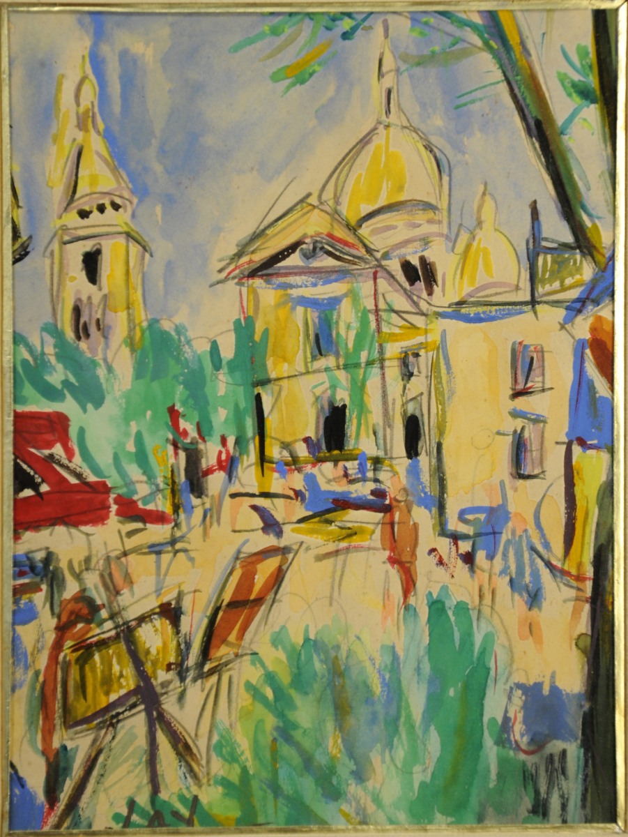 Aquarelle gouachée signée. Envoi au dos : "Pour Jacqueline Boissyvon ma merveilleuse amie avec toute mon affection Jean Barclay mmai 1971".