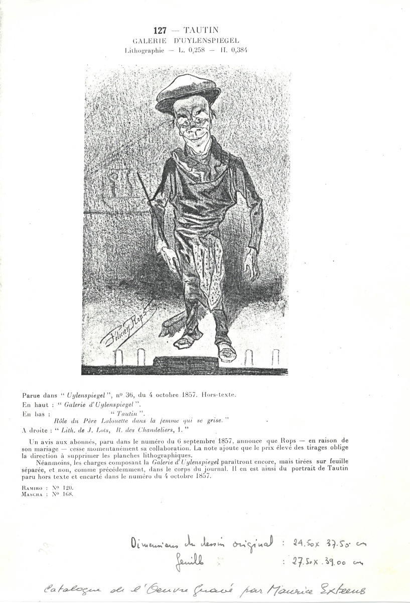 Cette oeuvre serait un projet dessiné en vue dune lithographie parue dans Uylenspiegel n°36 du 4 octobre 1857.