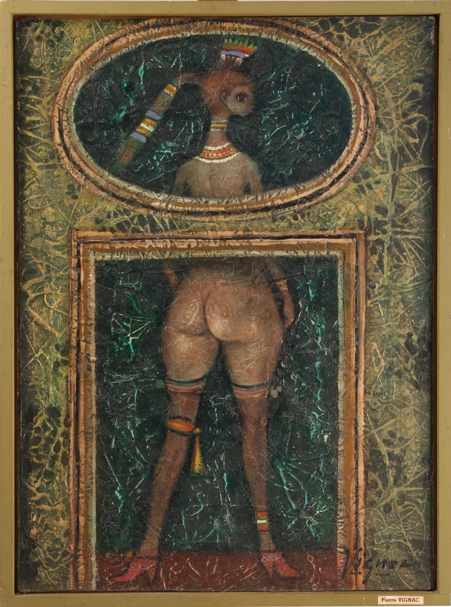 Gouache sur isorel signée en bas à droite, datée "69" et titrée au dos.