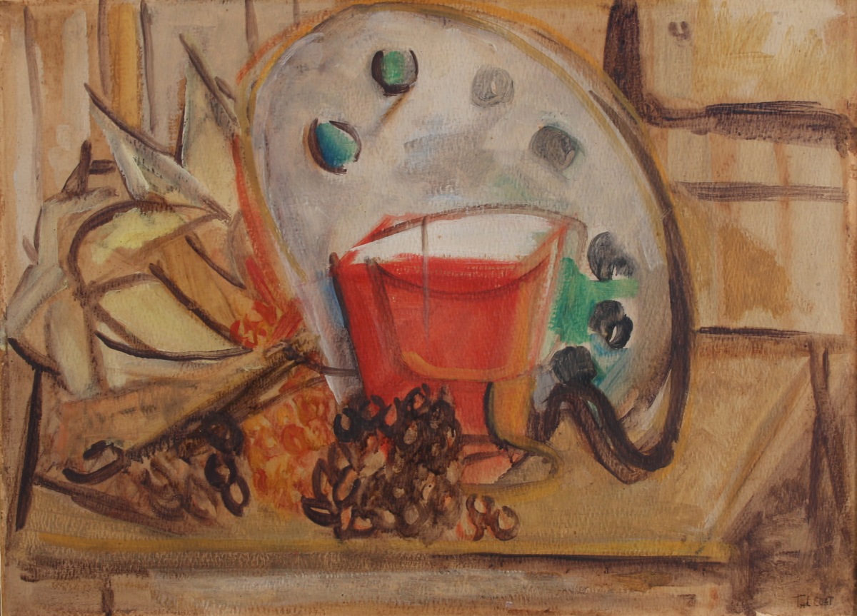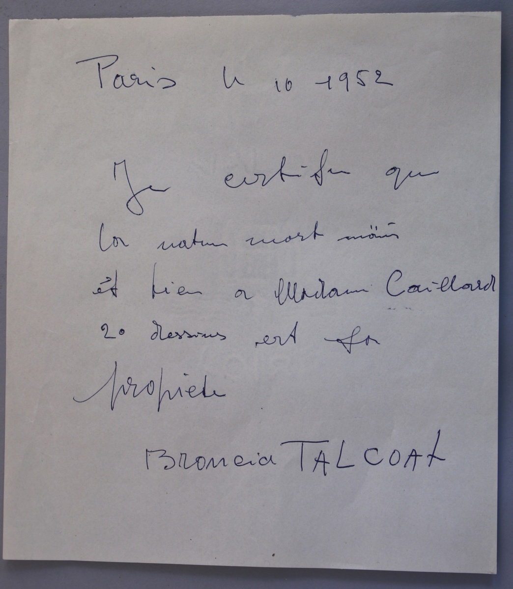 Fixé de 1940 à 1956 à Aix-en-Provence, Tal Coat peint une suite de Nature mortes sur des buffets ou des tables à partir de 1942. A partir de 1943 et durant deux années il travaille dans un atelier installé au Château-Noir, souvent peint par Cézanne.