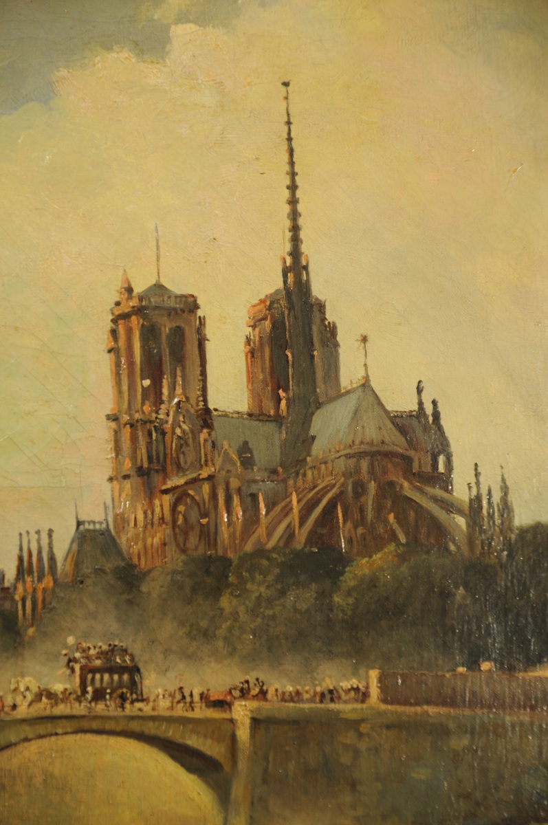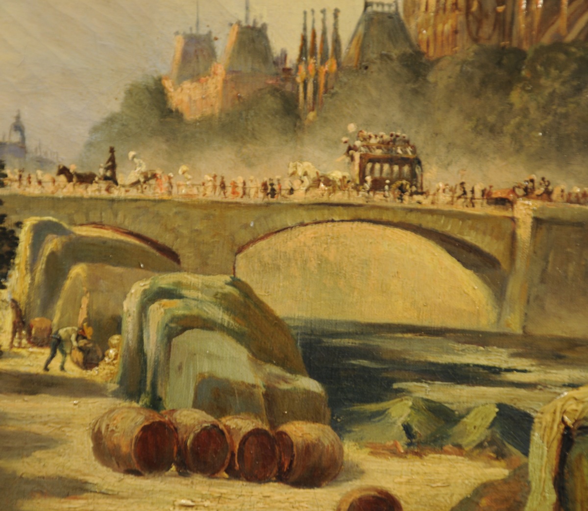 Vue animée du pont de l'Archevêché et du chevet de Notre-Dame.