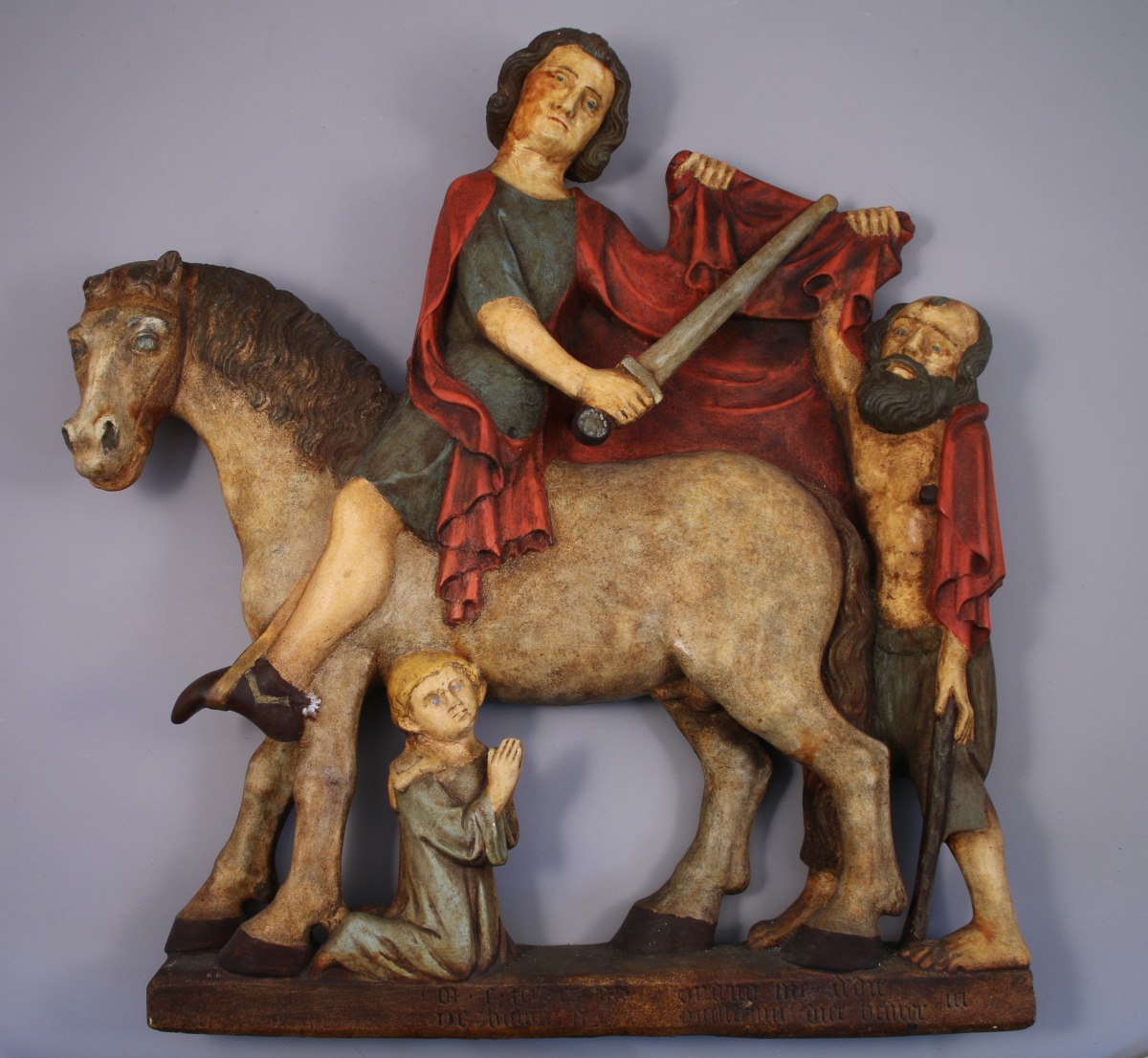 SAINT-MARTIN. Bas relief en plâtre polychrome d'après un modèle médiéval.