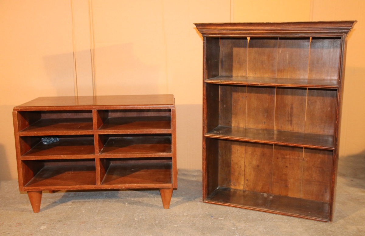 - MEUBLE BAS en bois de placage à 6 casiers.