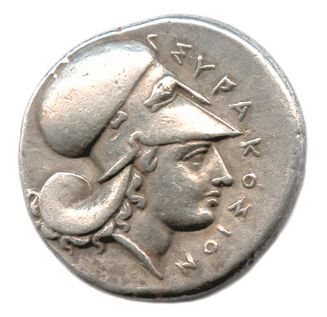 Tête d'Athéna à droite, coiffée d'un casque corinthien.