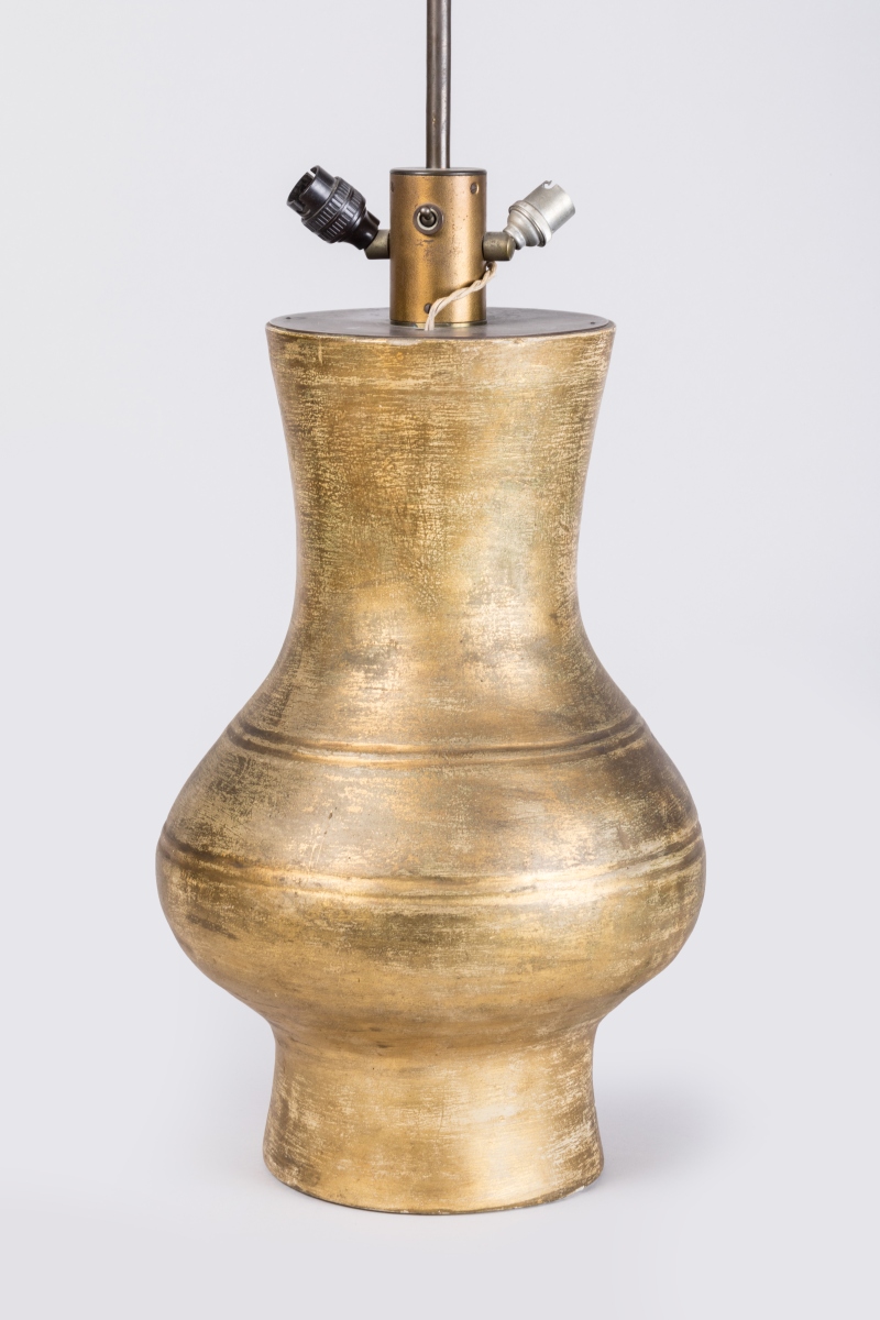 Bien quaucun modèle équivalent de vase ne soit référencé dans les archives du comité Jean-Michel Frank (Paris, 1895 - New-York, 1941), il est troublant que lesprit de cette lampe se rapproche de vases comparables, parfois chinois ou précolombien comme cest le cas dans lappartement de Claire Artaud, utilisés par le décorateur et reproduit dans différents ouvrages, notamment : Léopold Diégo Sanchez, "Jean-Michel Frank ", éd. du Regard, 1997, p. 239 et "Jean-Michel Frank, Adolche Chanaux, Intérieurs" éd. Jacques De Vos, 1990 p. 104.