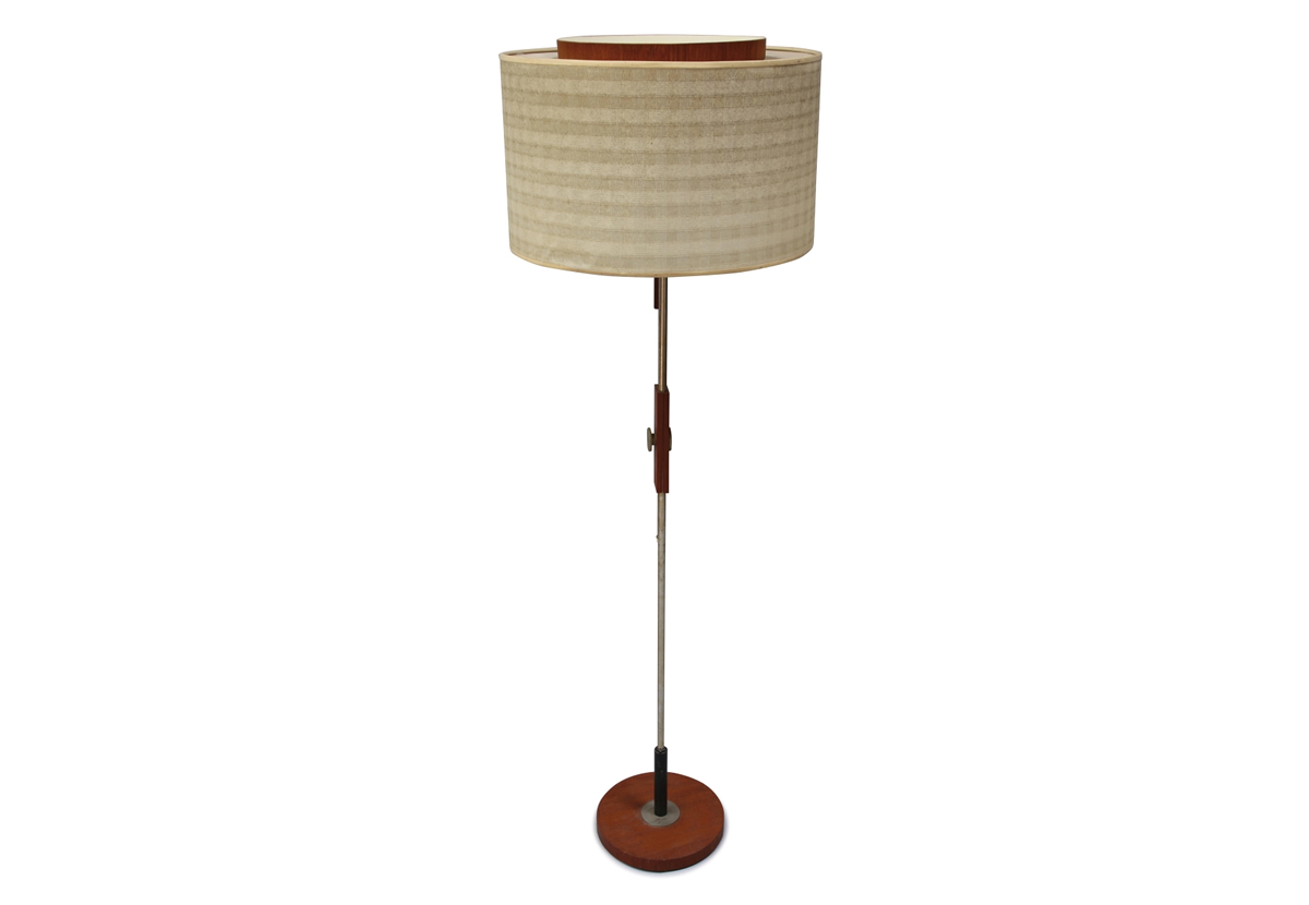 Piètement réglable en métal tubulaire chromé et teck. Base circulaire.