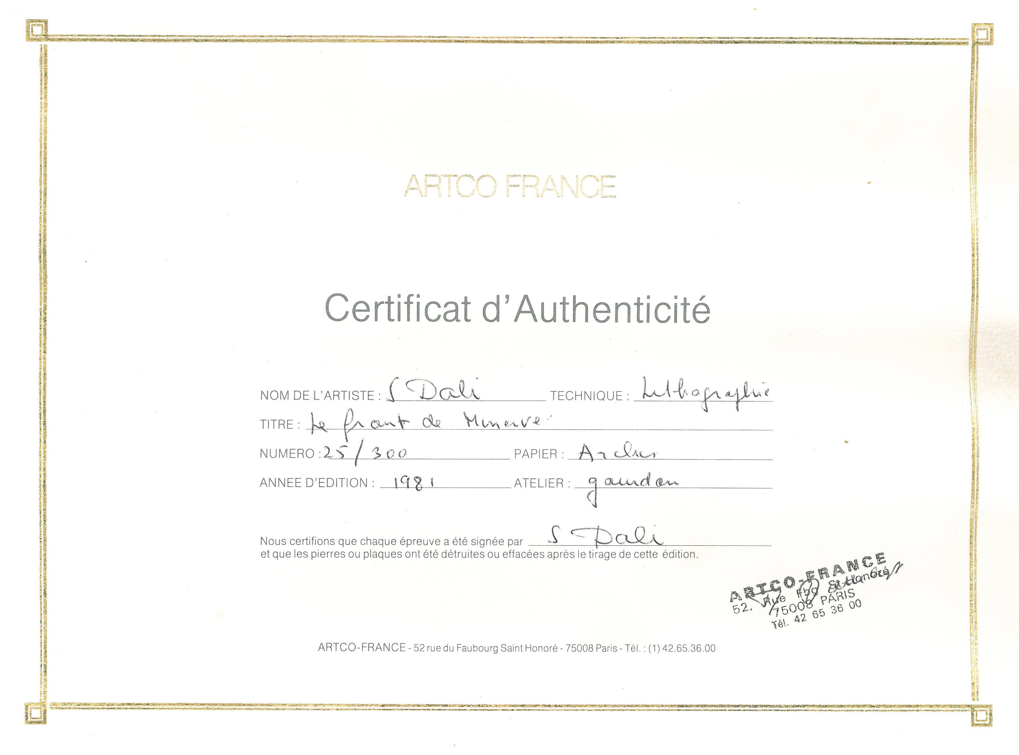 Salvador DALÍ (Figueras, 1904 - 1989)"Le Front de Minerve"Lithographie signée...
