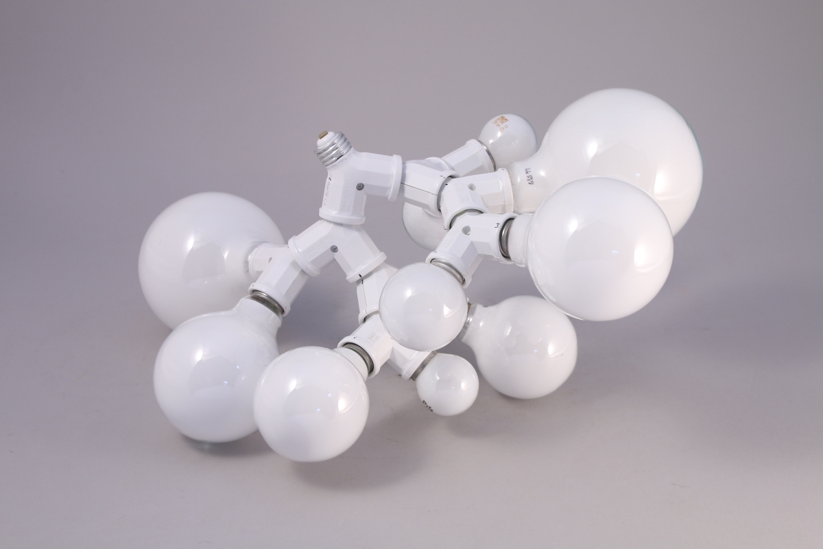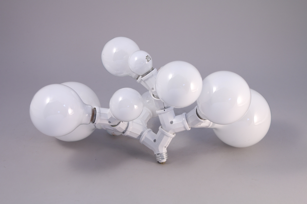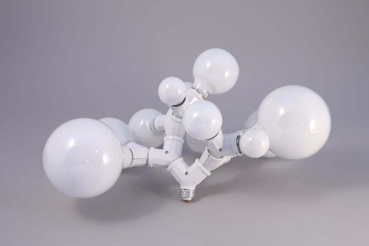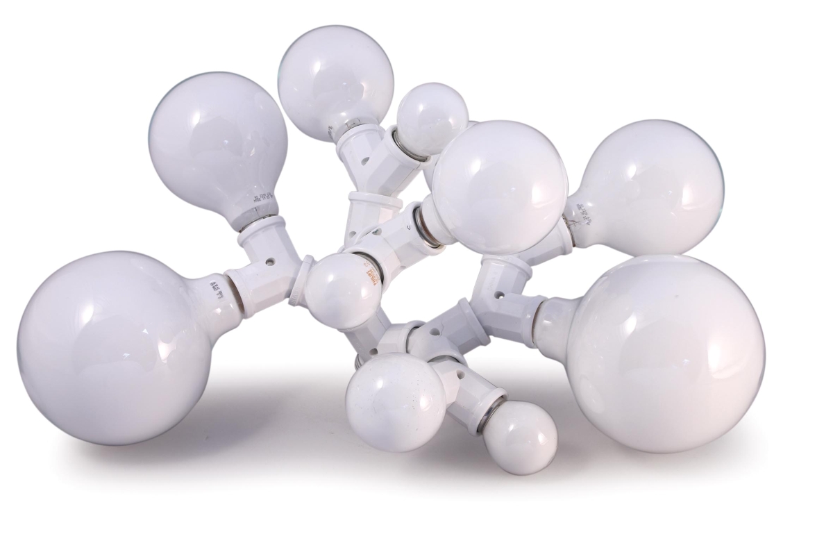 Énergie lumineuse courant le long dune structure bourgeonnante. Doubles douilles, ampoules.