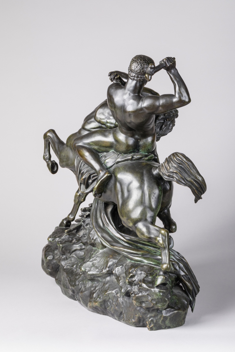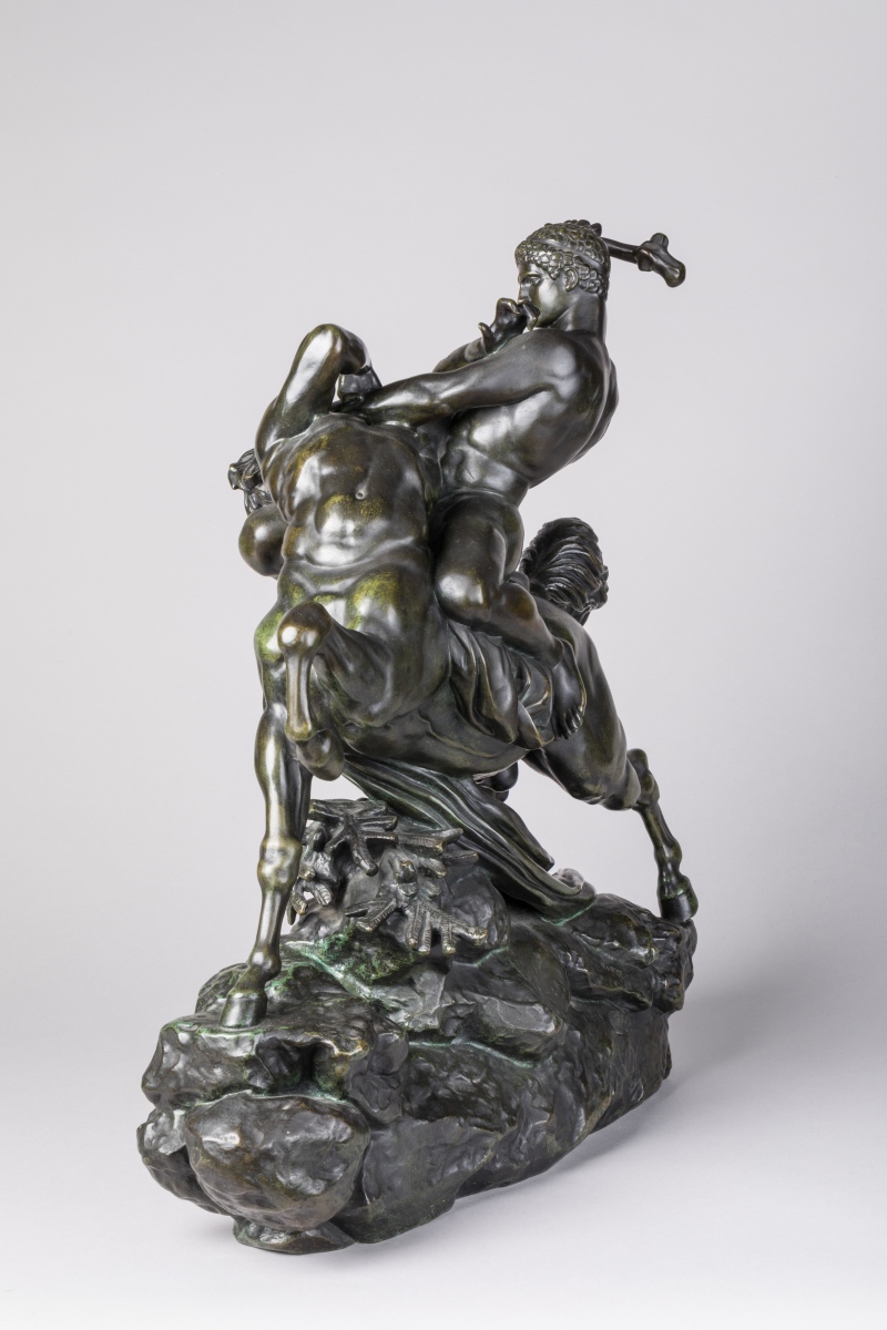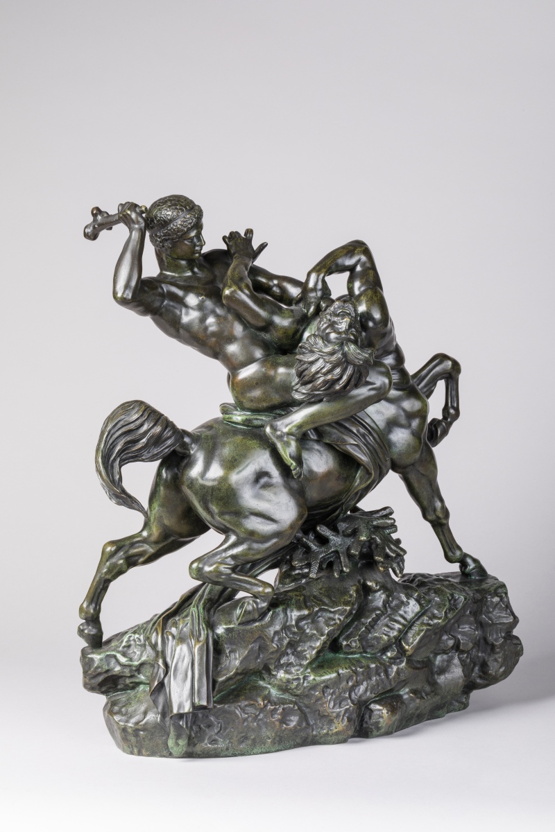 Antoine-Louis BARYE. Theseus slaying the Centaur Bienor. Bronze with green and black patina. Signed twice. Stamped with the Barbedienne foundry mark.