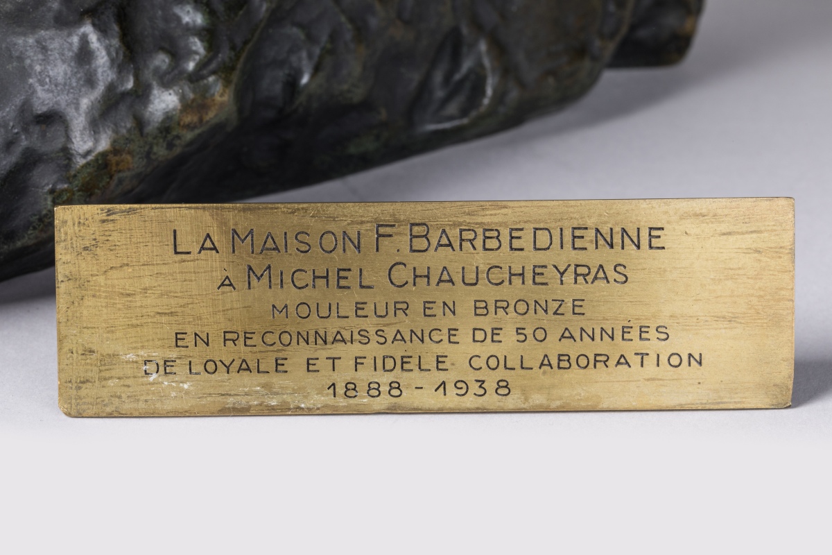 - "Cette uvre primée à l'exposition du travail en 1925 (hors concours - officier de l'académie) a été offerte en 1938 par M. Leblanc Barbedienne à M. Chaucheyras Jean pour 50 années de travail dans sa maison en 1945 ".