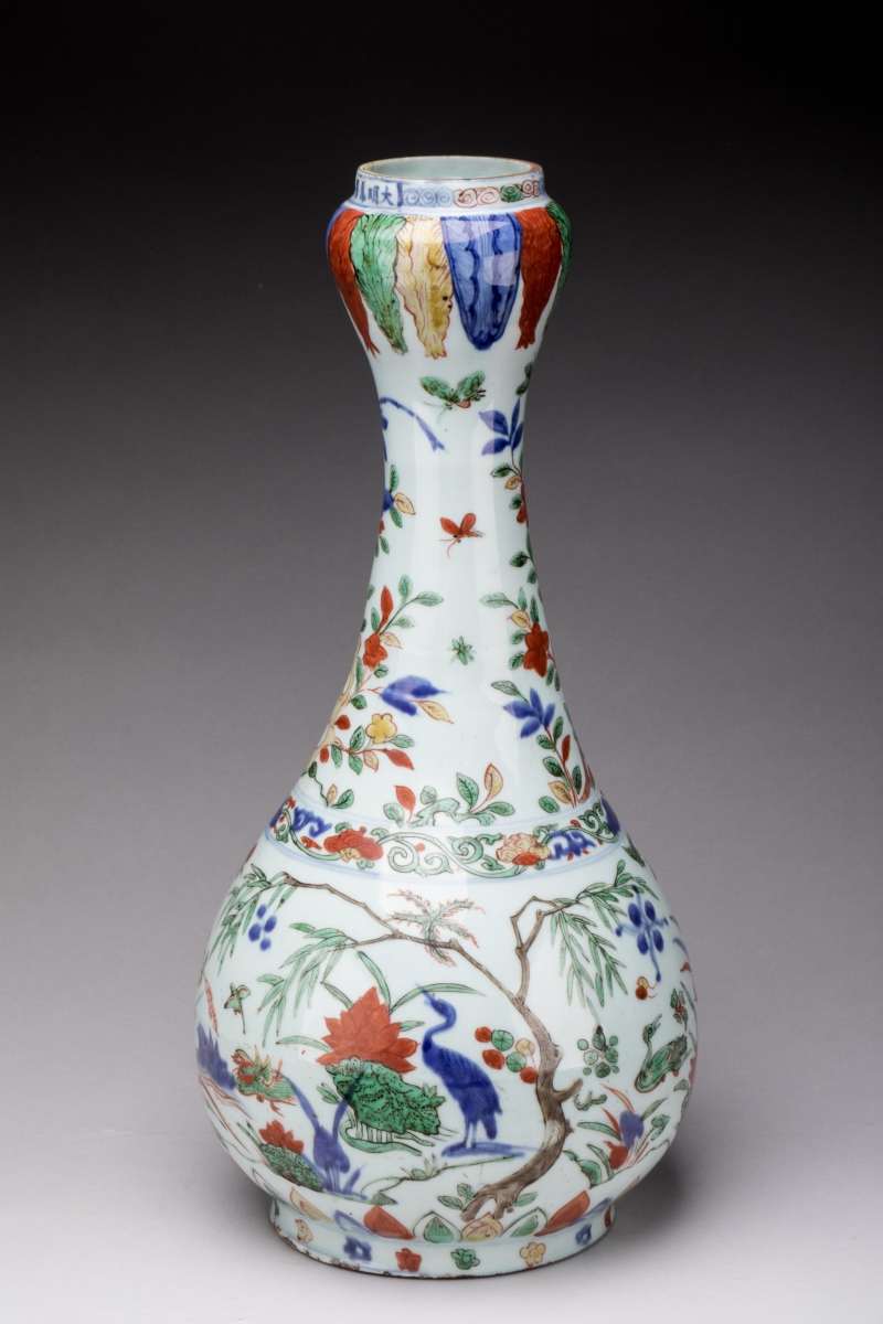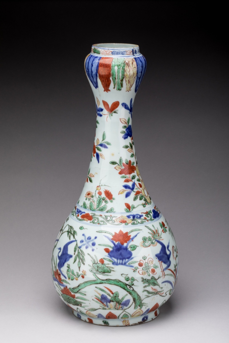 CHINA. WANLI period. A "suan tou ping" porcelain VASE decorated with blue and "wucai" polychrome enamels.
