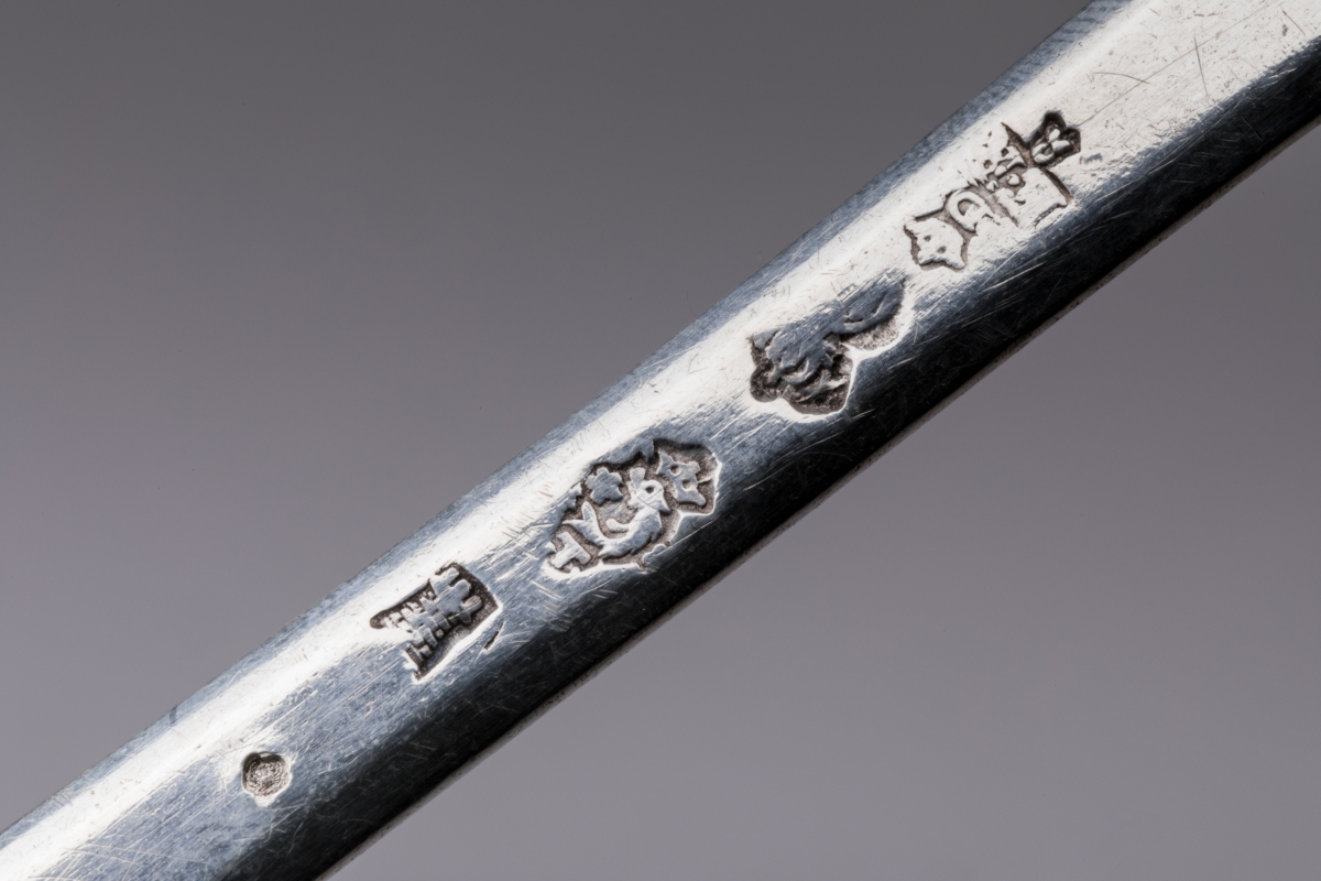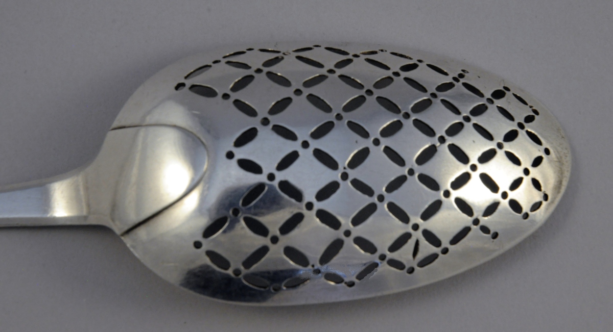 en argent. Le cuilleron repercé de croisillons. Spatule violonée.