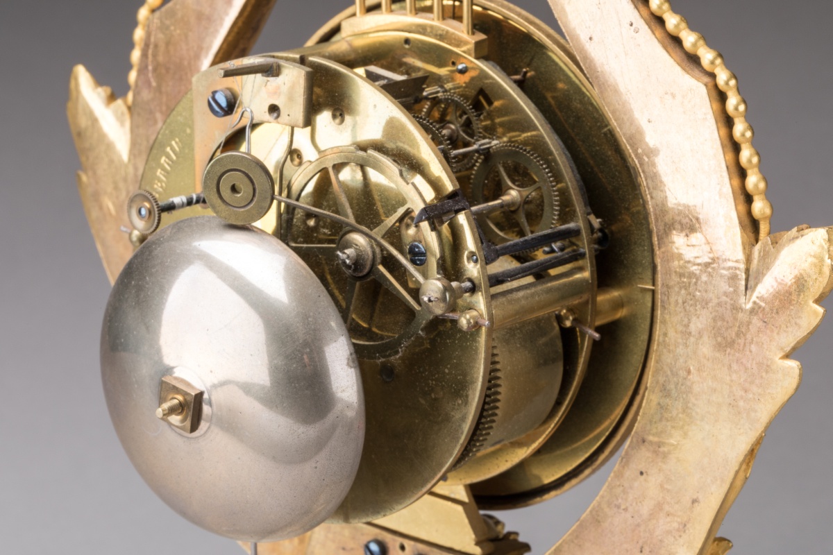A gilt-bronze and white marble LYRE CLOCK. Louis 16 period.