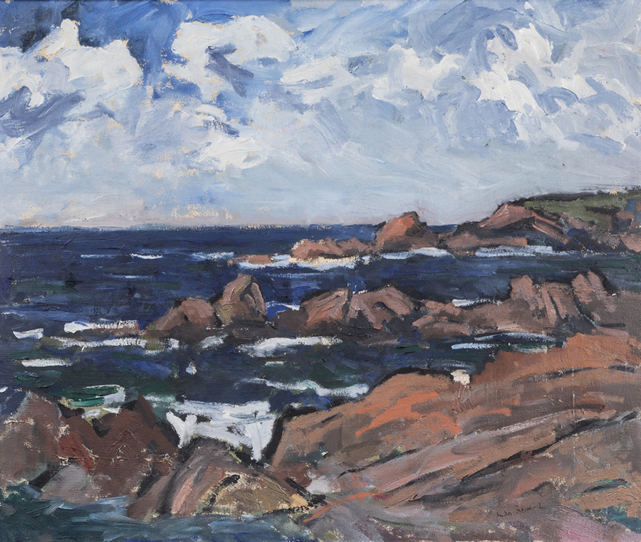 Anders OSTERLIND. Bréhat, pink granite coast. Oil on canvas. Signed lower right and captioned on chassis. Before 1938.