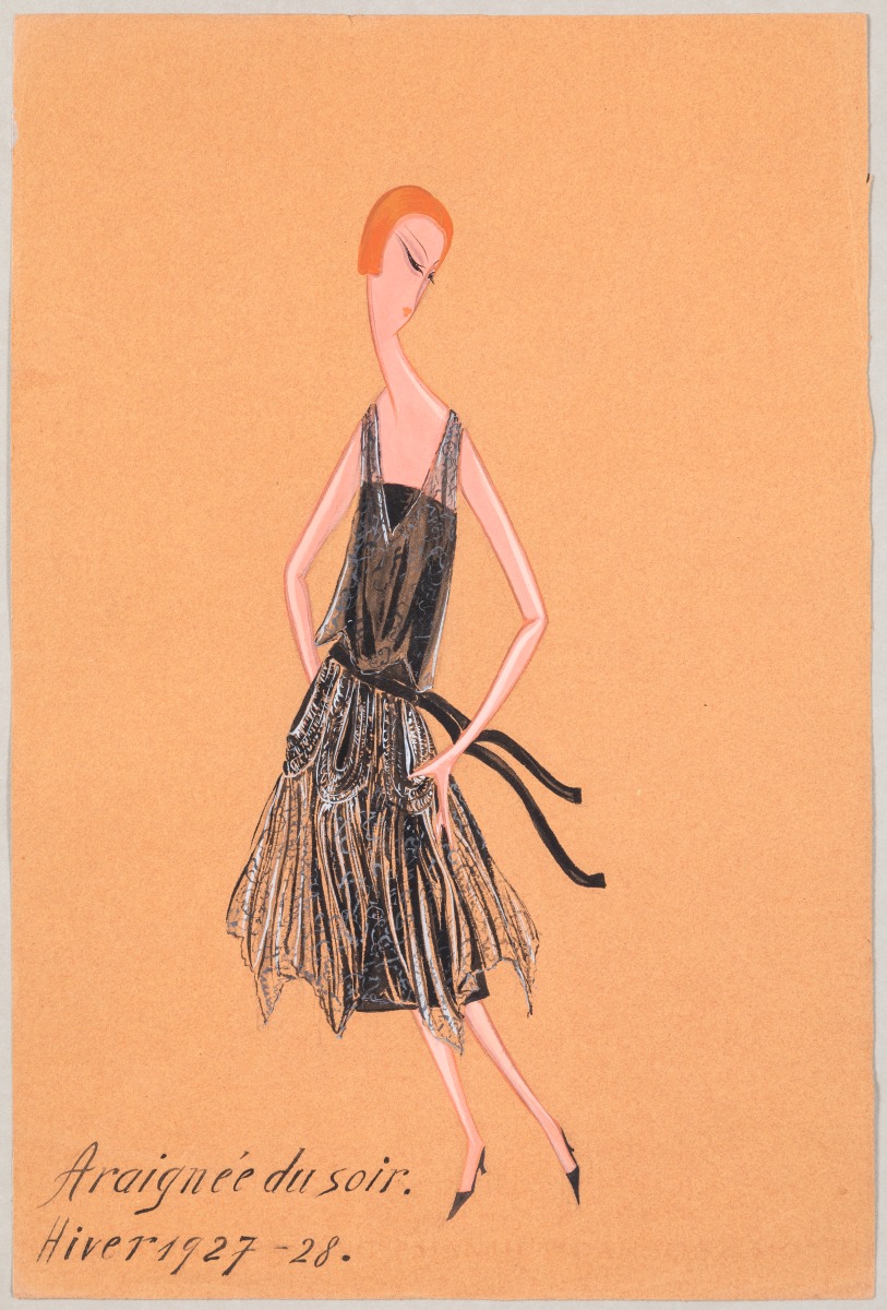 Mine de plomb, encre de Chine, gouache titrée sur papier coloré orangé, datée " Hiver 1927-28. "