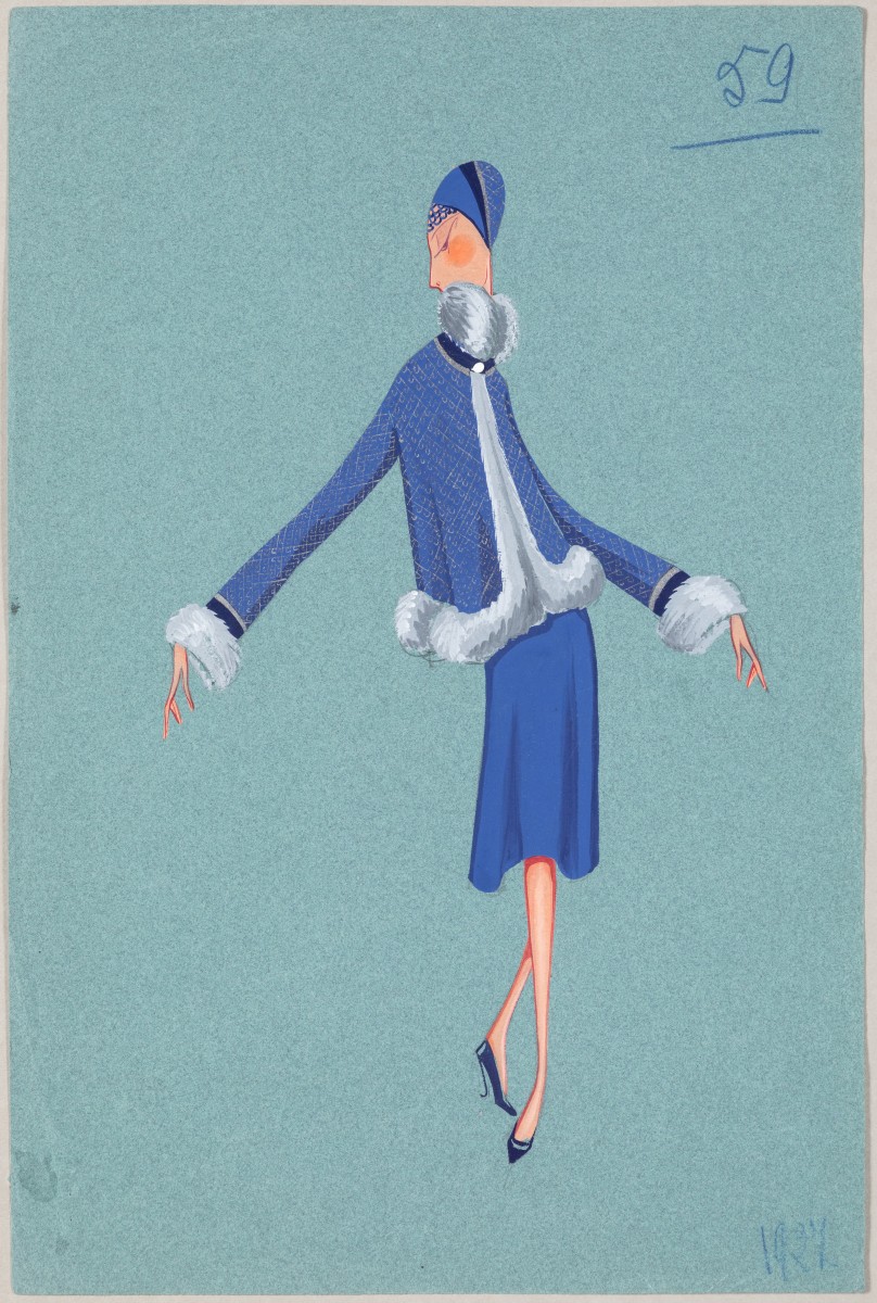 Mine de plomb, gouache sur papier vert, numéro 59 en haut à droite, daté en bas 1927.