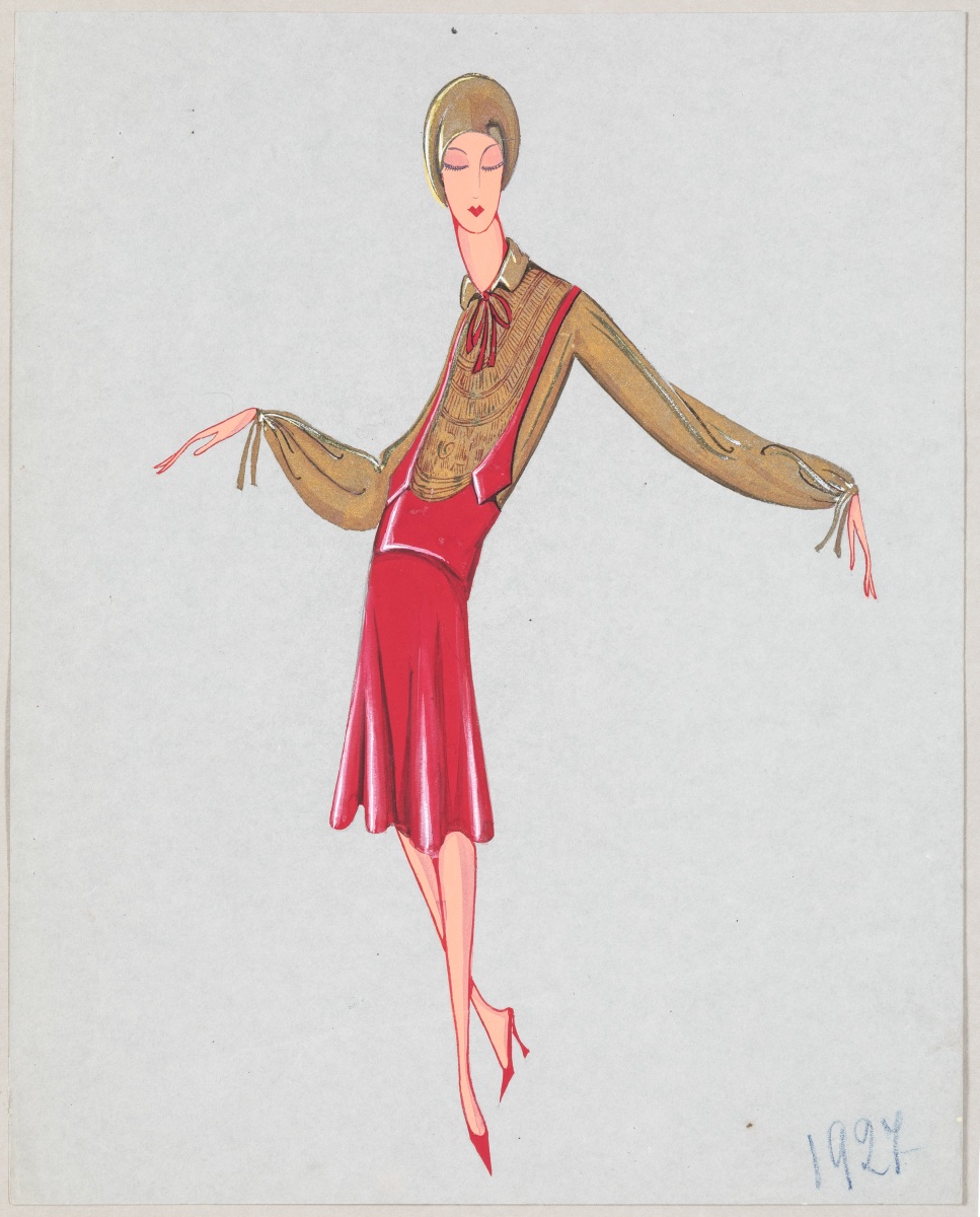 Mine de plomb, gouache sur papier coloré gris, datée " 1927 ".