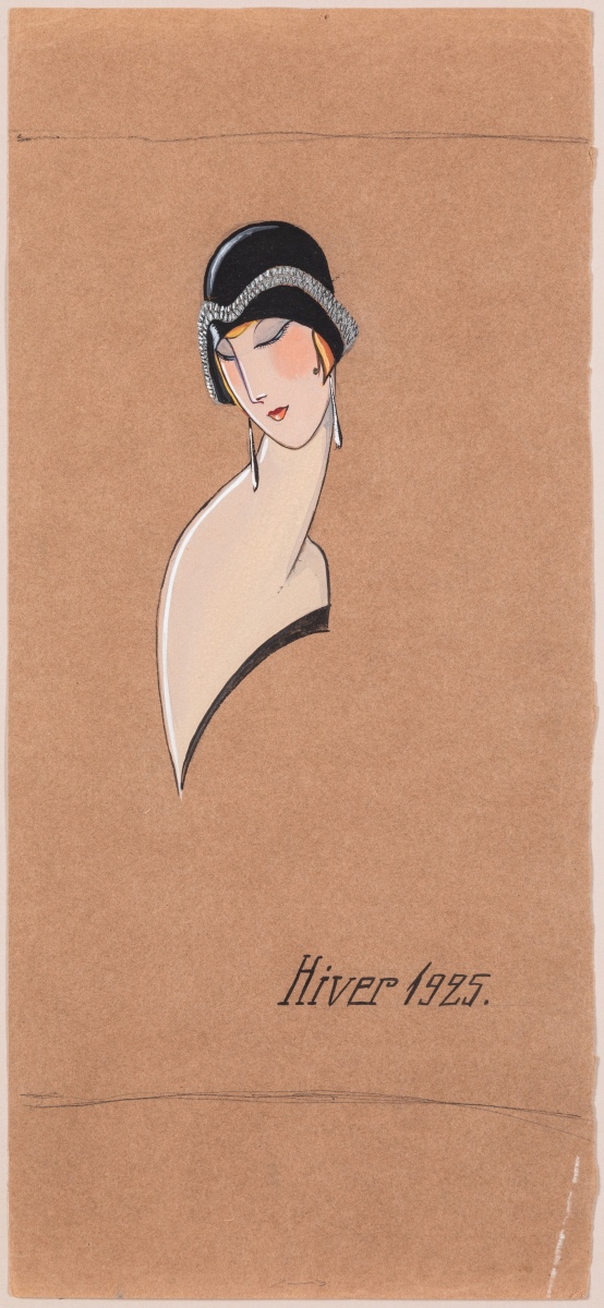 Mine de plomb, gouache sur papier coloré abricot, datée "Hiver 1925".