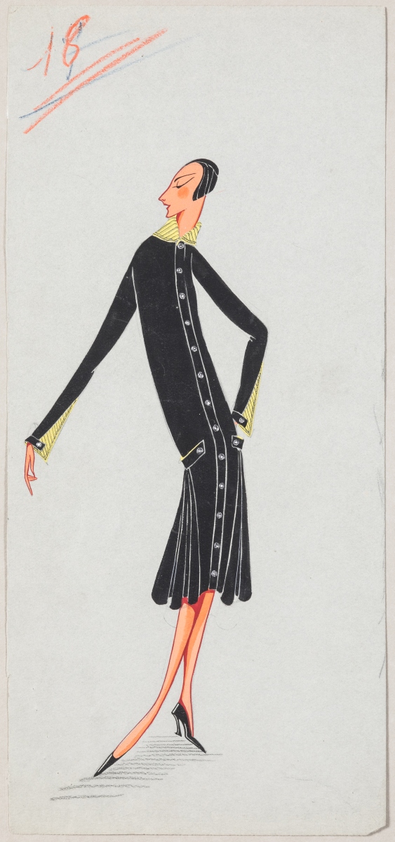 Mine de plomb, gouache sur papier coloré gris, non datée, annotée "18" en haut à gauche.