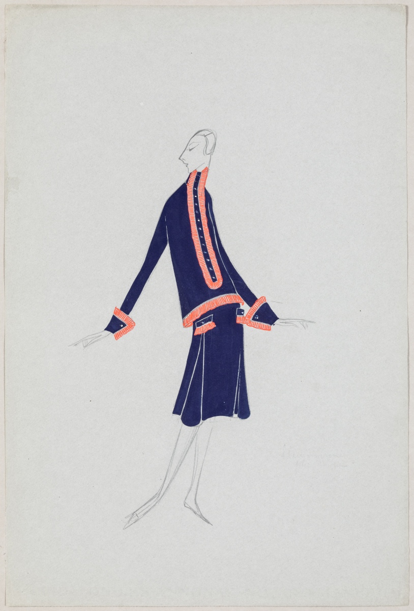 Ensembles à jupes évasées et manches longues, trois dessins.