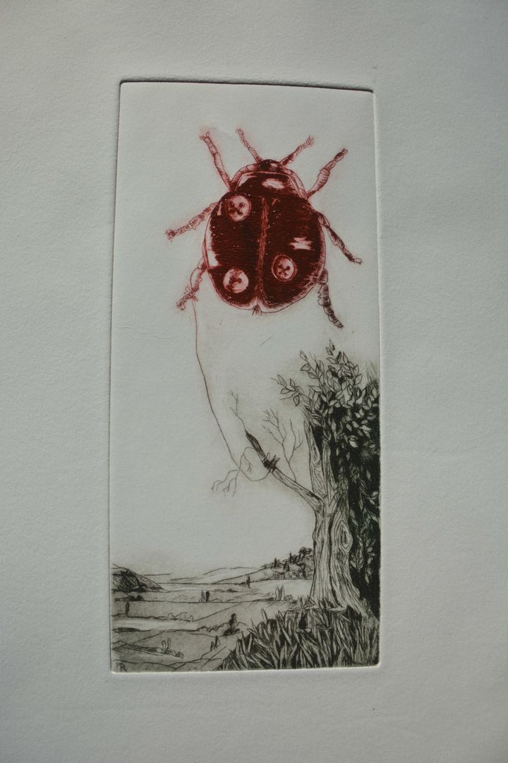 Planter, peindre, graver pour moi, c'est tracer son sillon dans la matière. Ce geste de la gouge, du burin, du berceau ou de la pointe sèche, c'est atteindre par différentes métamorphoses de l'animal, de l'insecte, du végétal, nos peurs, nos songes.