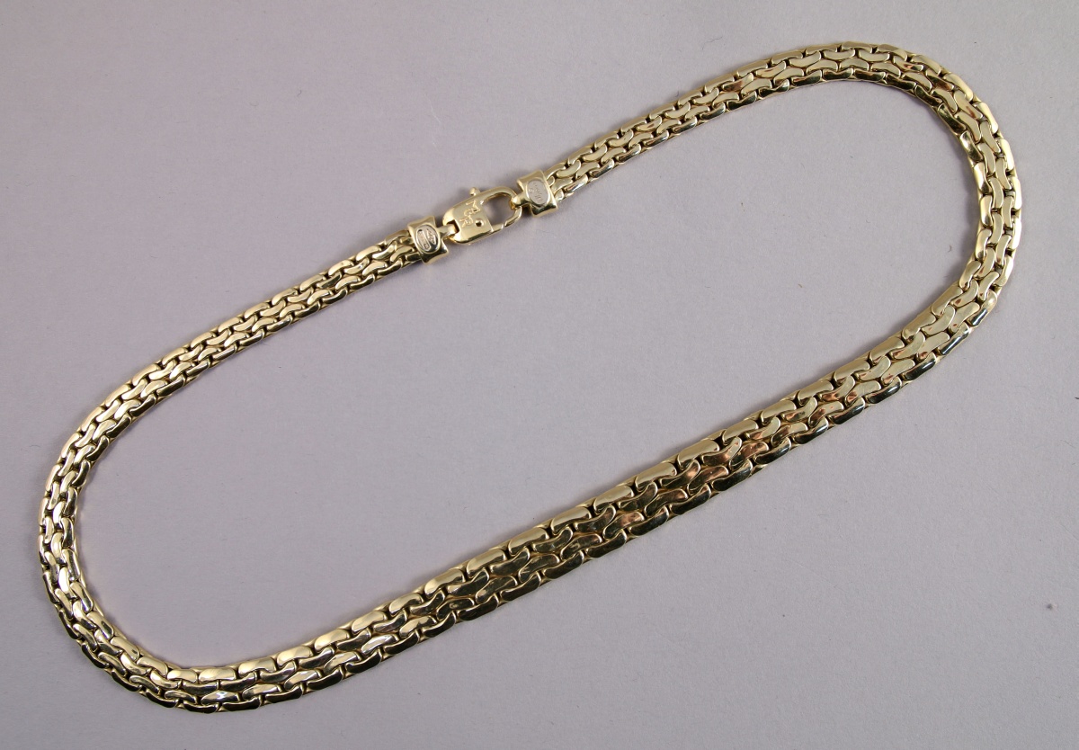 COLLIER en or jaune 18K. Maille haricot double en chute. Travail italien.