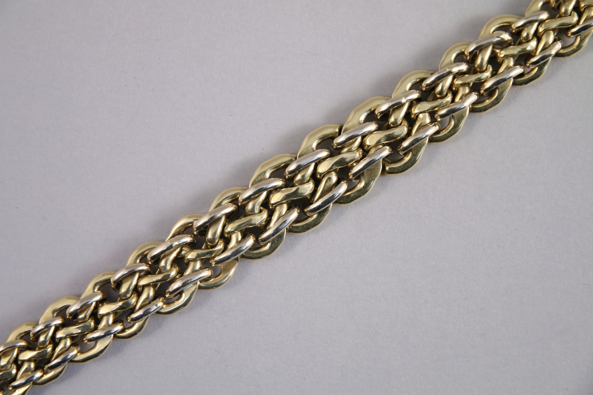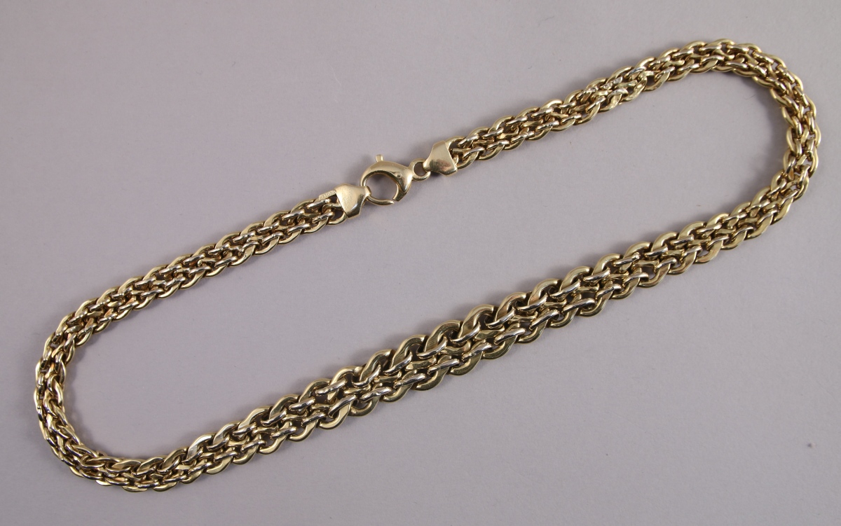 COLLIER en or jaune 18K. Maille articulée en chute. Travail italien.