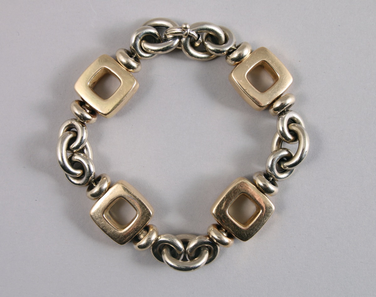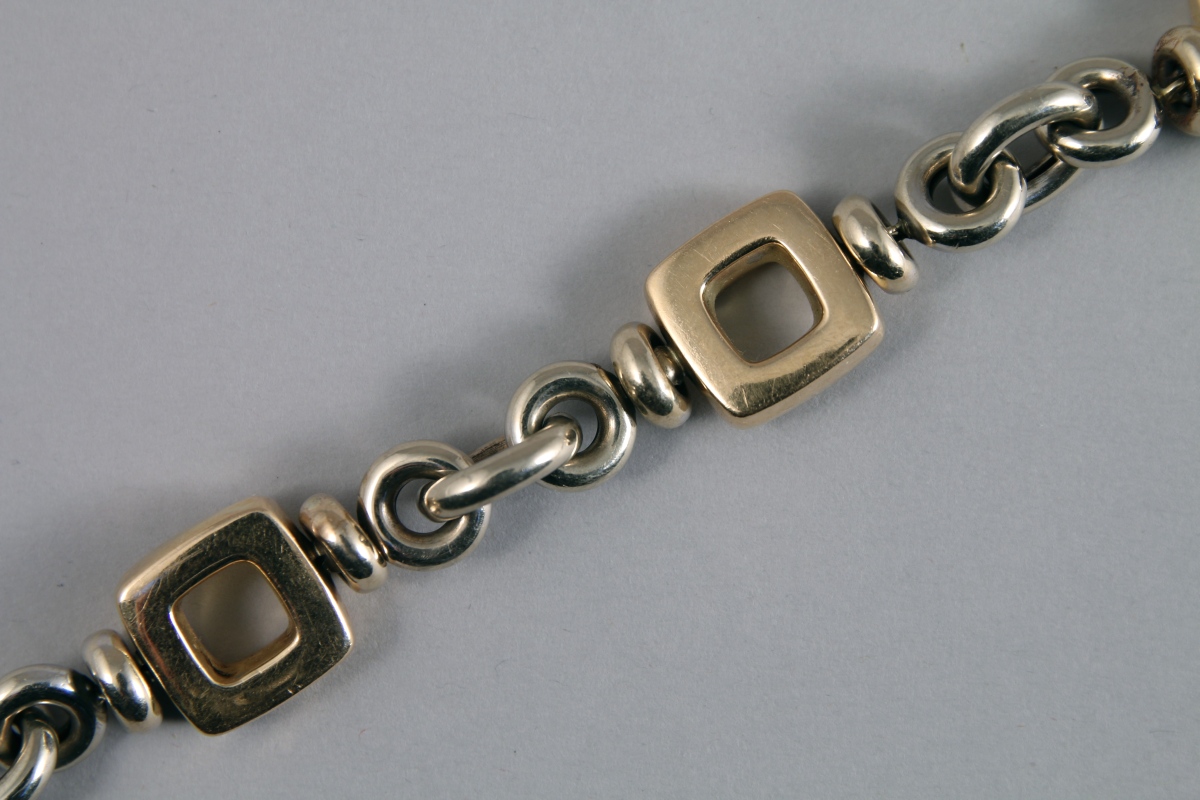 BRACELET en or jaune et blanc 18K. Maille jaseron alternée de maillons de forme carrée (creuse). Travail étranger.
