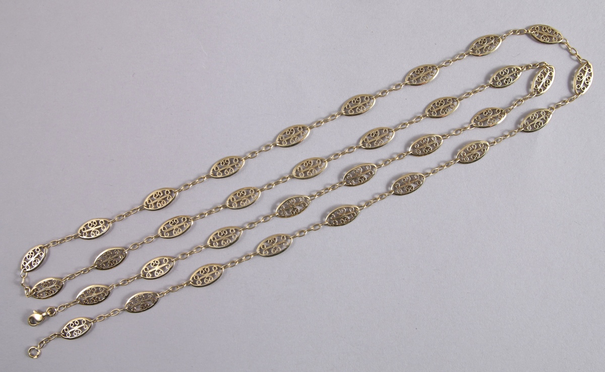 SAUTOIR en or jaune 18K. Maille filigranée. Poinçon tête d'aigle.