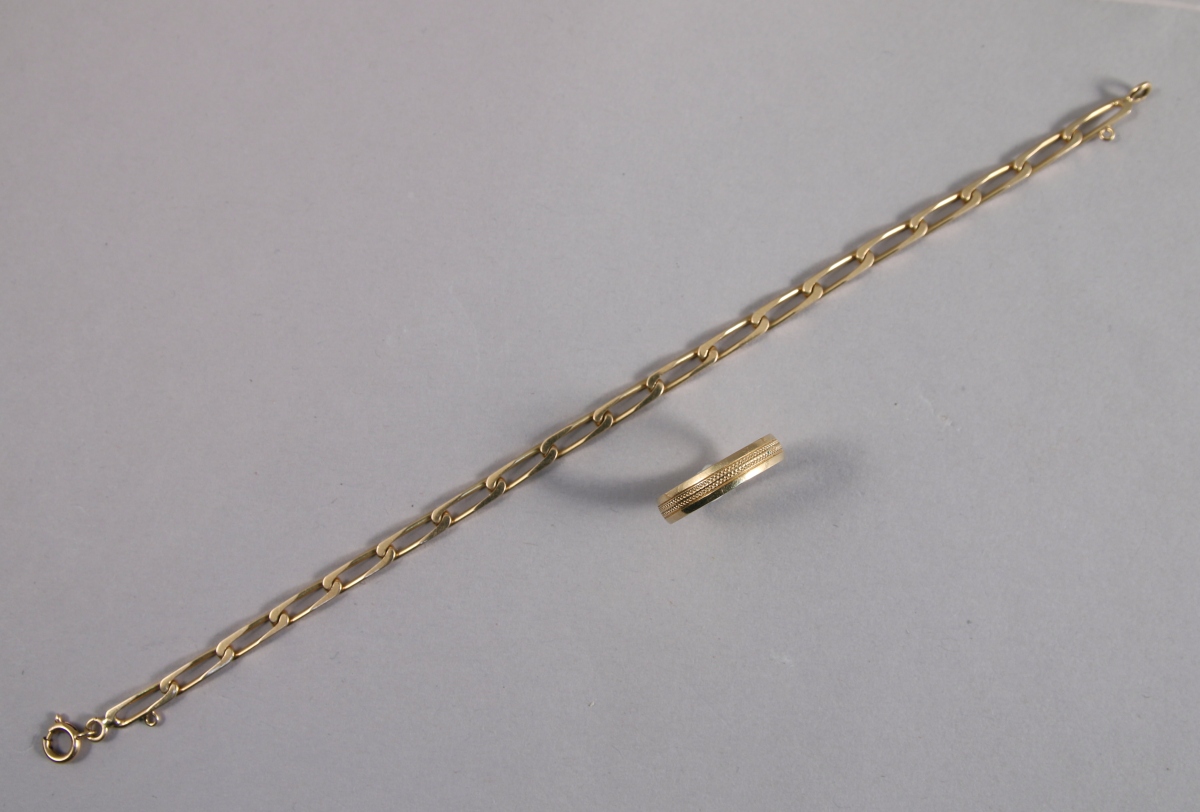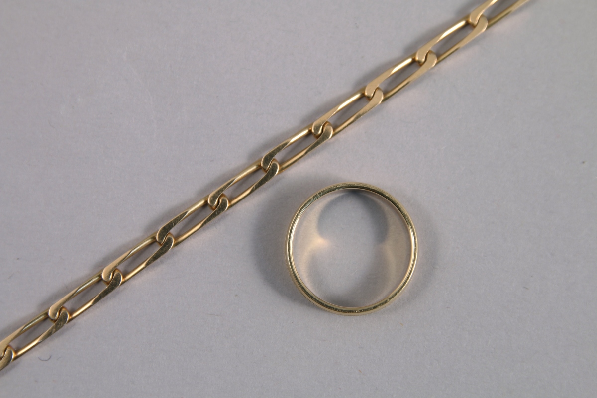 GOURMETTE à mailles plates (Long. 18 cm) et une ALLIANCE (TDD 51) en or jaune 18K.