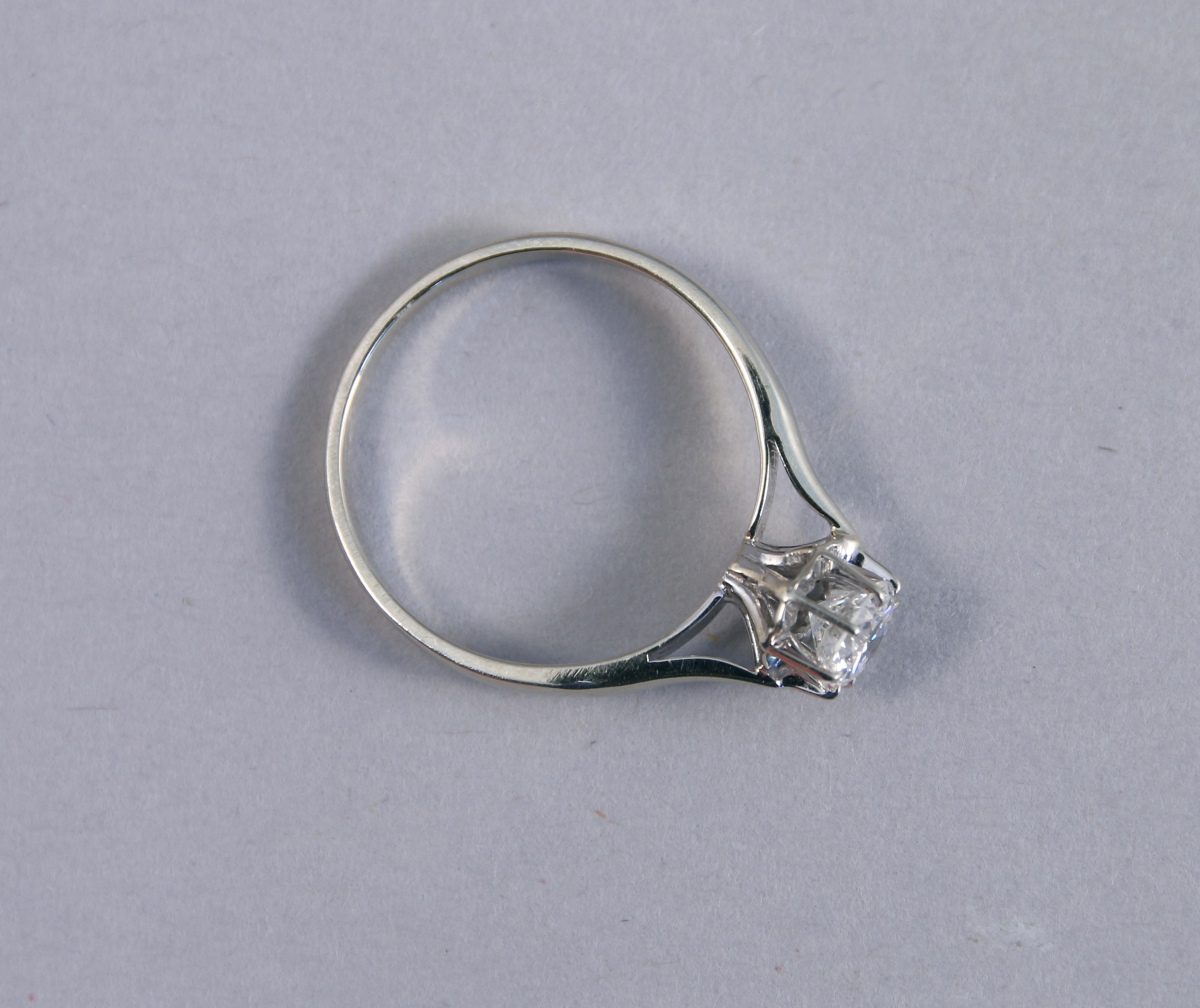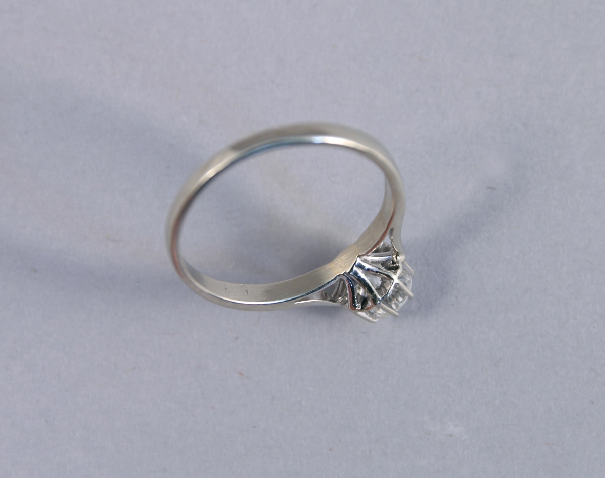 BAGUE en or blanc 18K orné d'un DIAMANT taille brillant d'environ 0,6 ct.