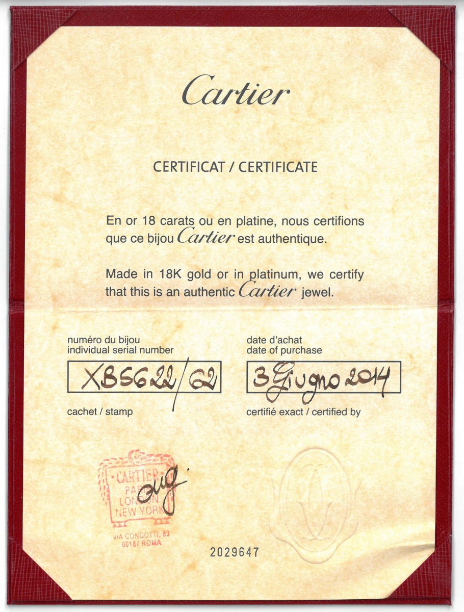 Provenance : achat le 3 juin 2014, boutique Cartier de la via Condotti à Rome.
