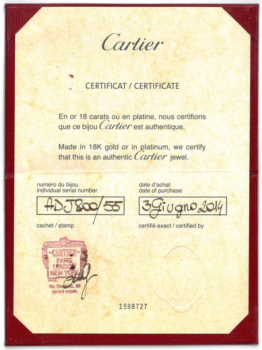 Provenance : achat le 3 juin 2014, boutique Cartier de la via Condotti à Rome.