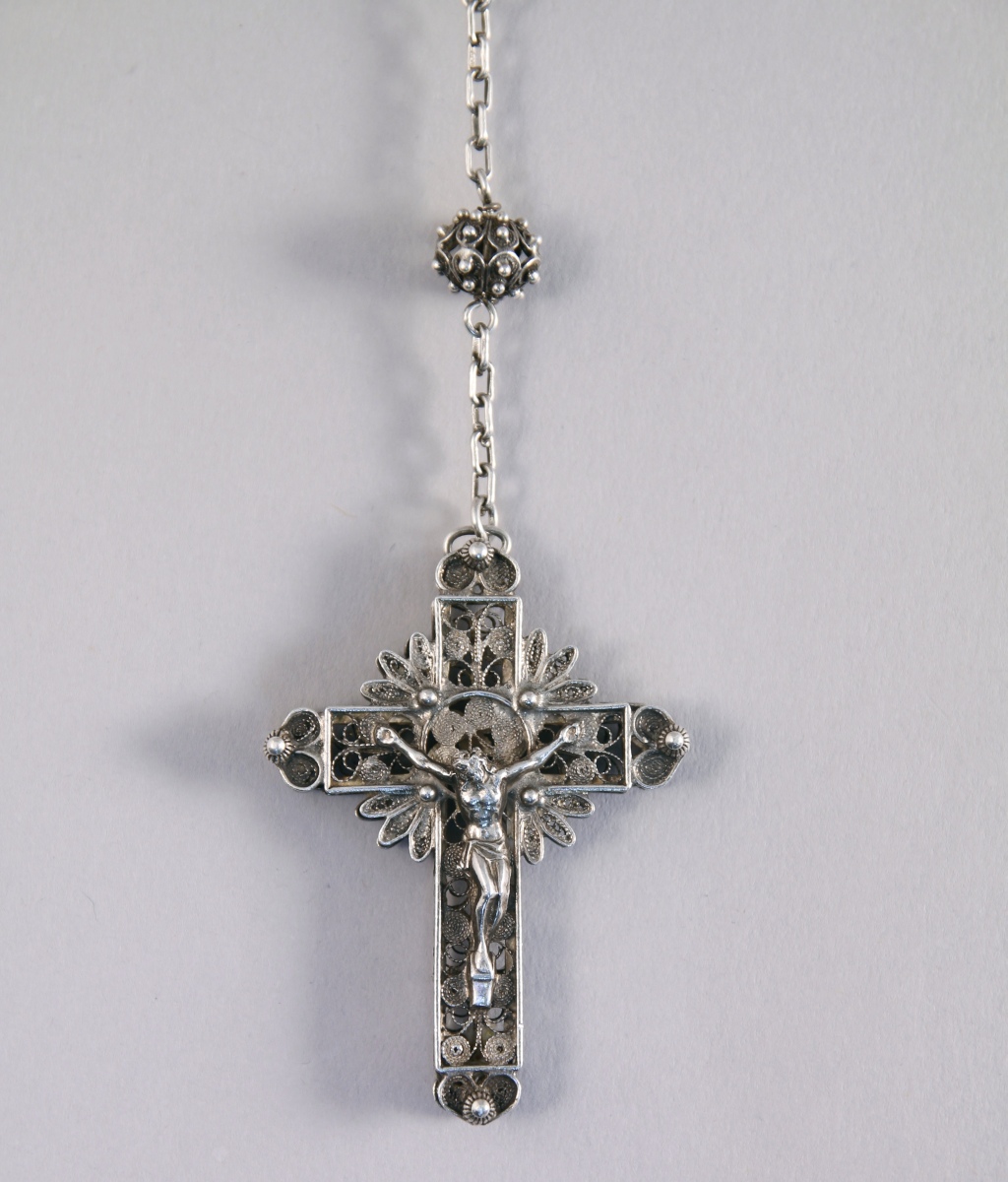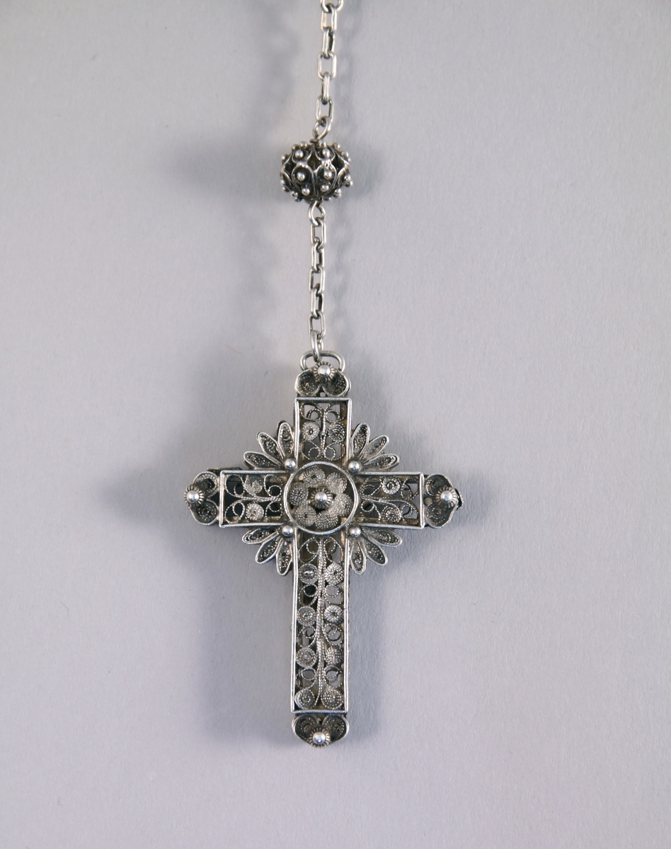 Important CHAPELET à fin décor filigranné. Maille forçat.