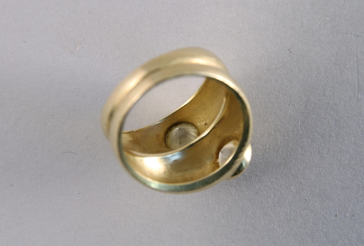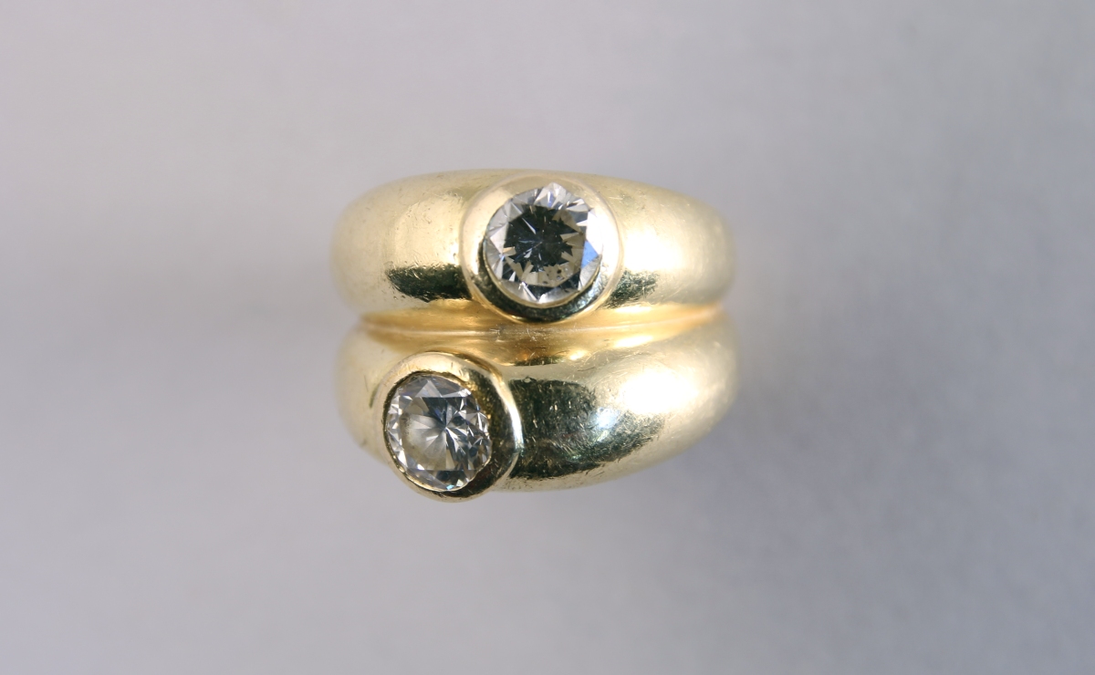 BAGUE "TOI ET MOI" à deux godrons en or jaune ornés de deux DIAMANTS de taille brillant pour environ 1,71 cts.