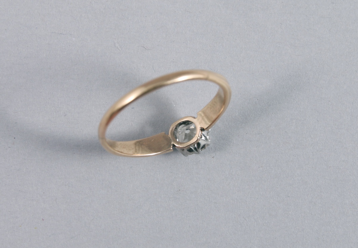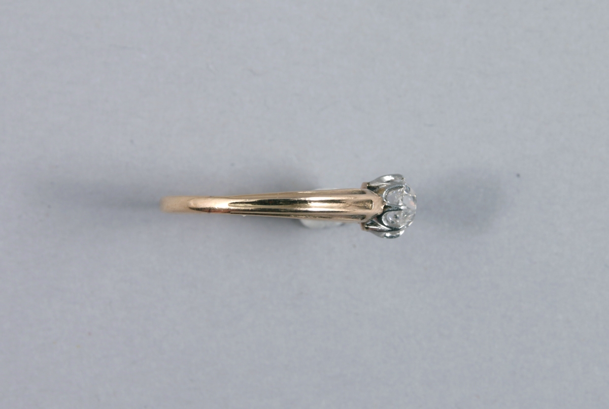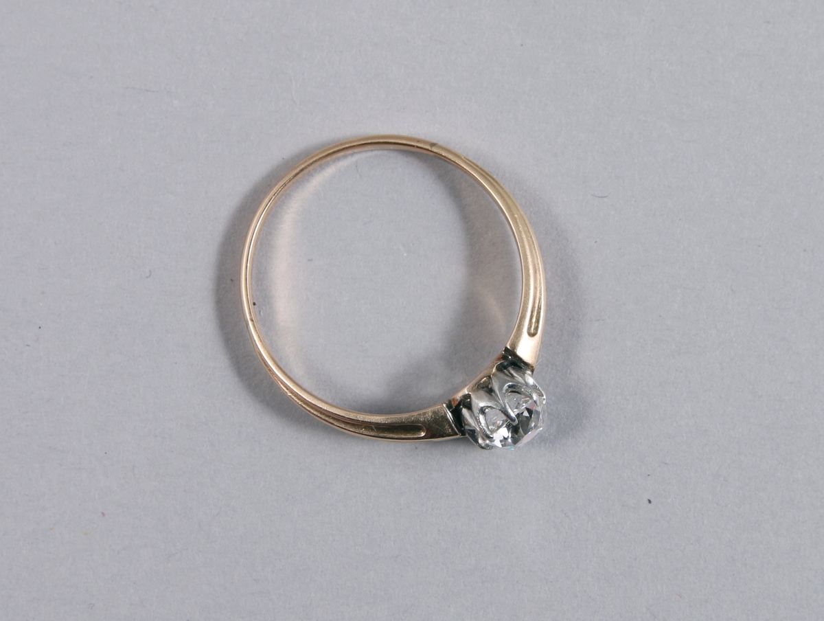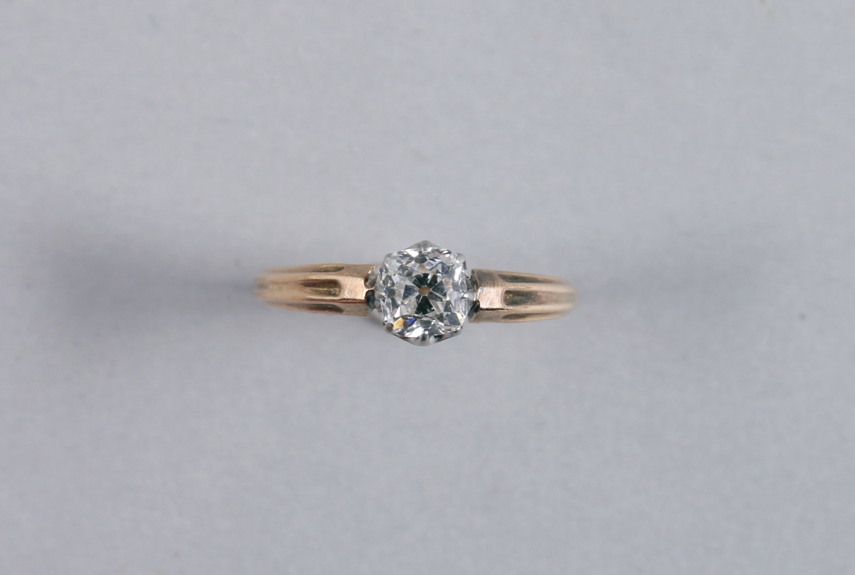 BAGUE en or jaune 18K ornée d'un DIAMANT solitaire de forme coussin et de taille ancienne d'environ 0,75 ct.
