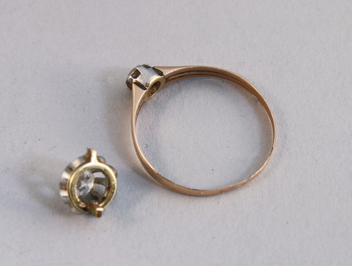 JOINT : BAGUE solitaire en or et platine sertie d'un petit diamant ancienne d'environ 0,15 carat.