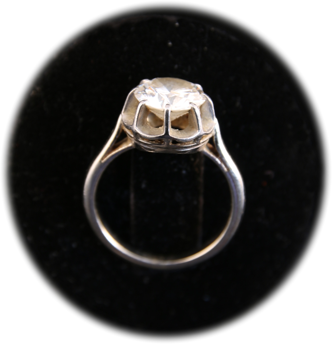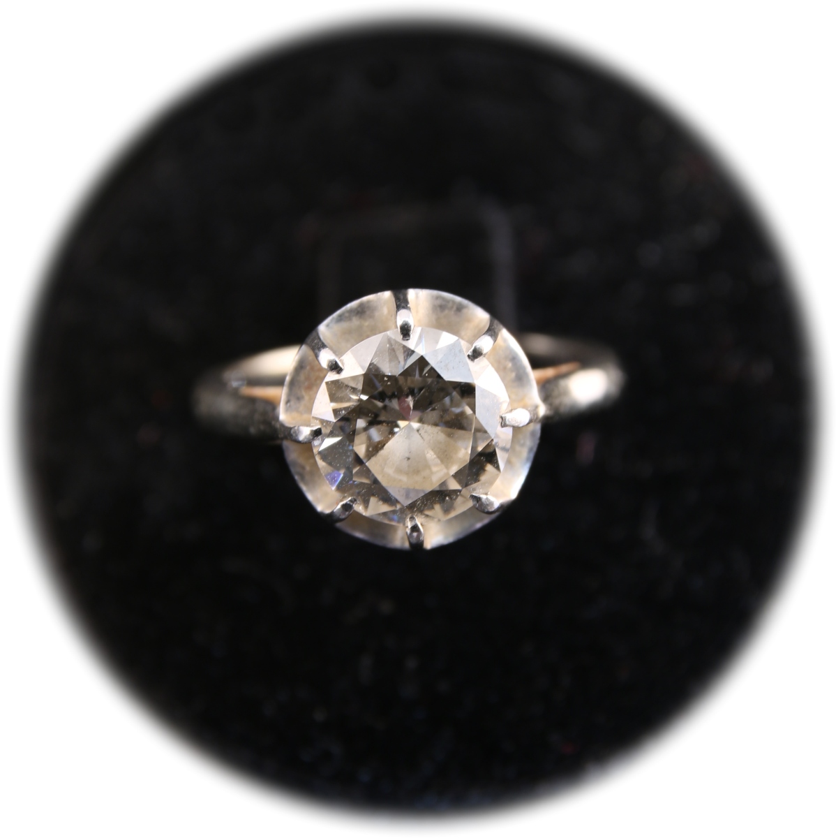 BAGUE en or gris 750°/oo et platine 850°/oo ornée au centre d'un diamant rond de taille brillant solitaire pesant 2.12 ct.