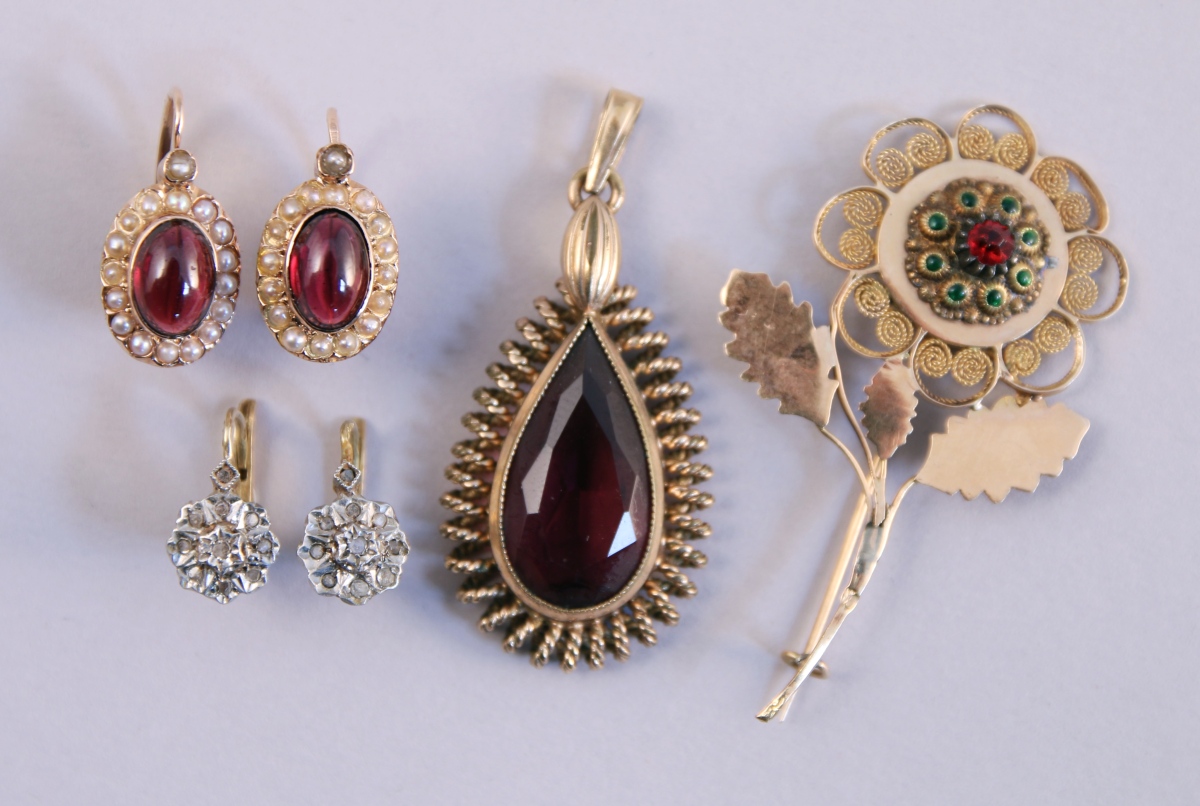 - un PENDENTIF orné d'une pierre violette taillée en poire (améthyste ?),