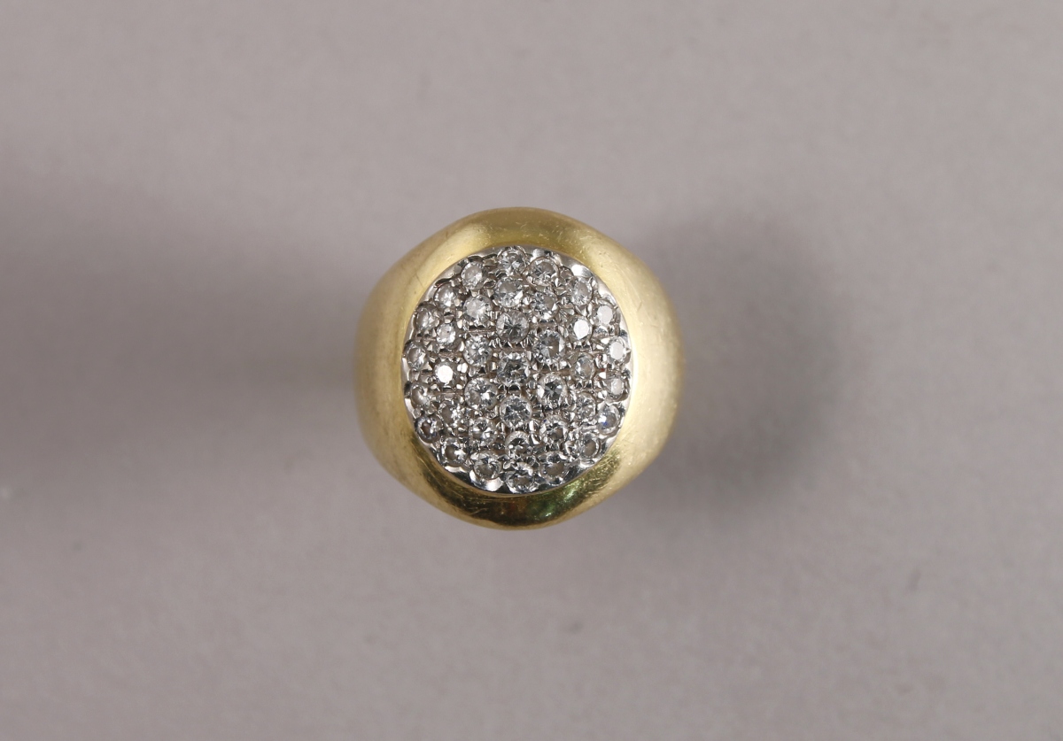 BAGUE en or jaune 18K centrée d'un cartouche de forme ovale pavé de 37 BRILLANTS.