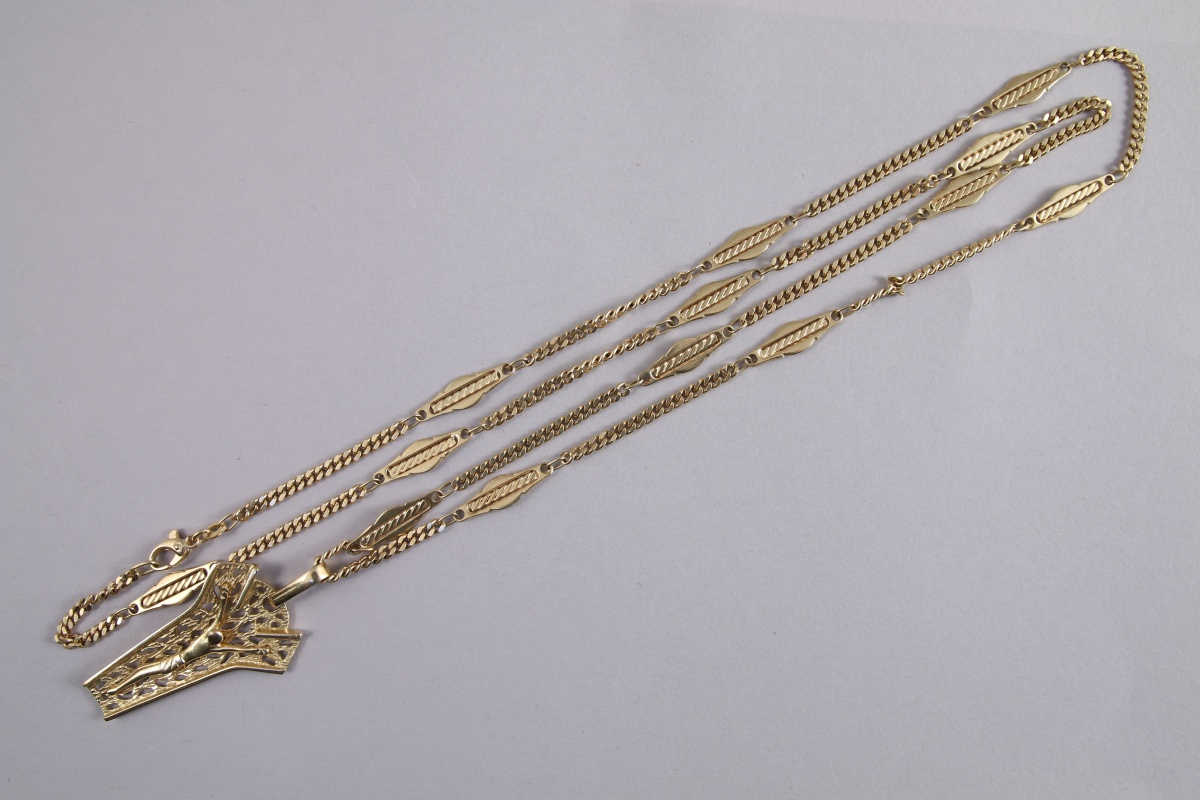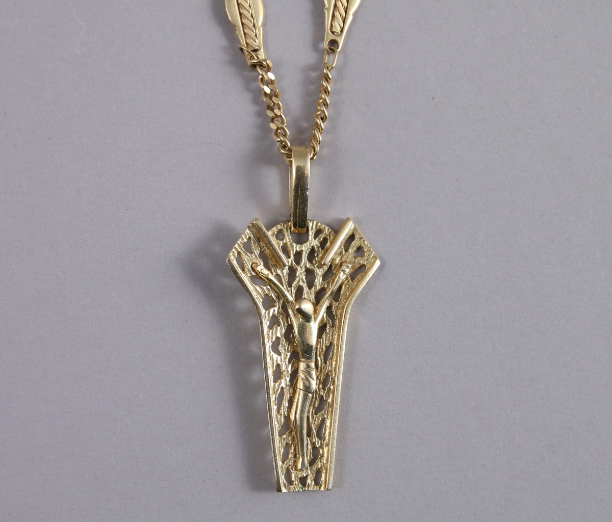 Avec un PENDENTIF CRUCIFIX en or jaune 18K. Haut. 4,5 cm. Poids : 11,6 g.