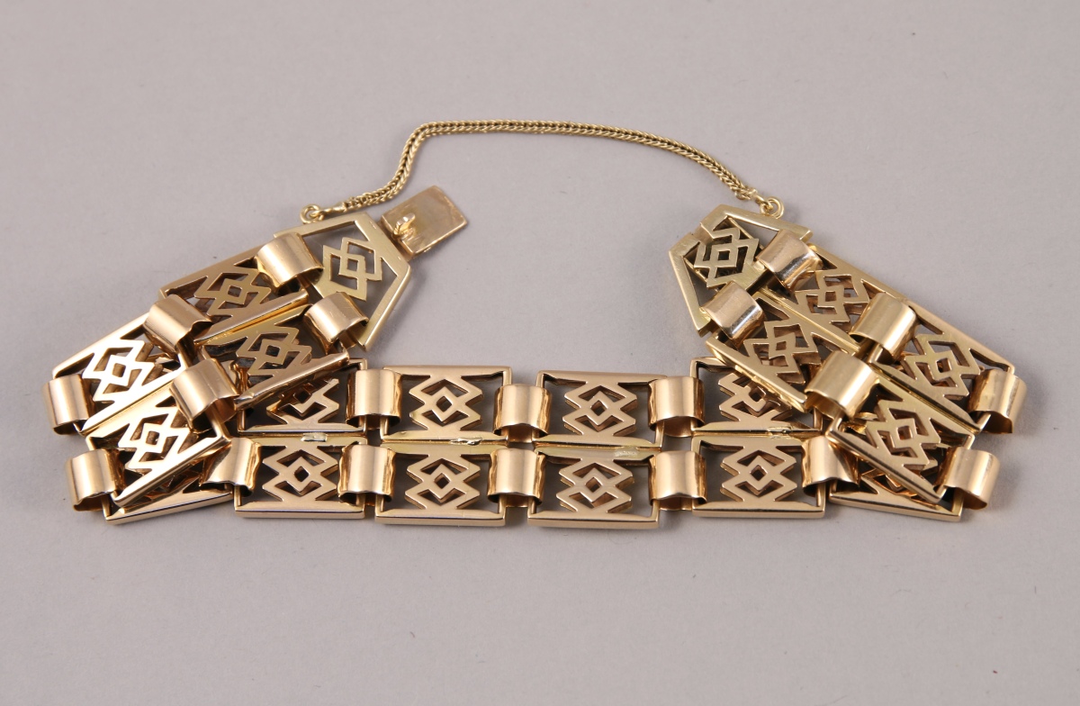 BRACELET en or jaune 18K à mailles ajourées plates créé à partir d'une chaine giletière. Fermoir de sécurité.