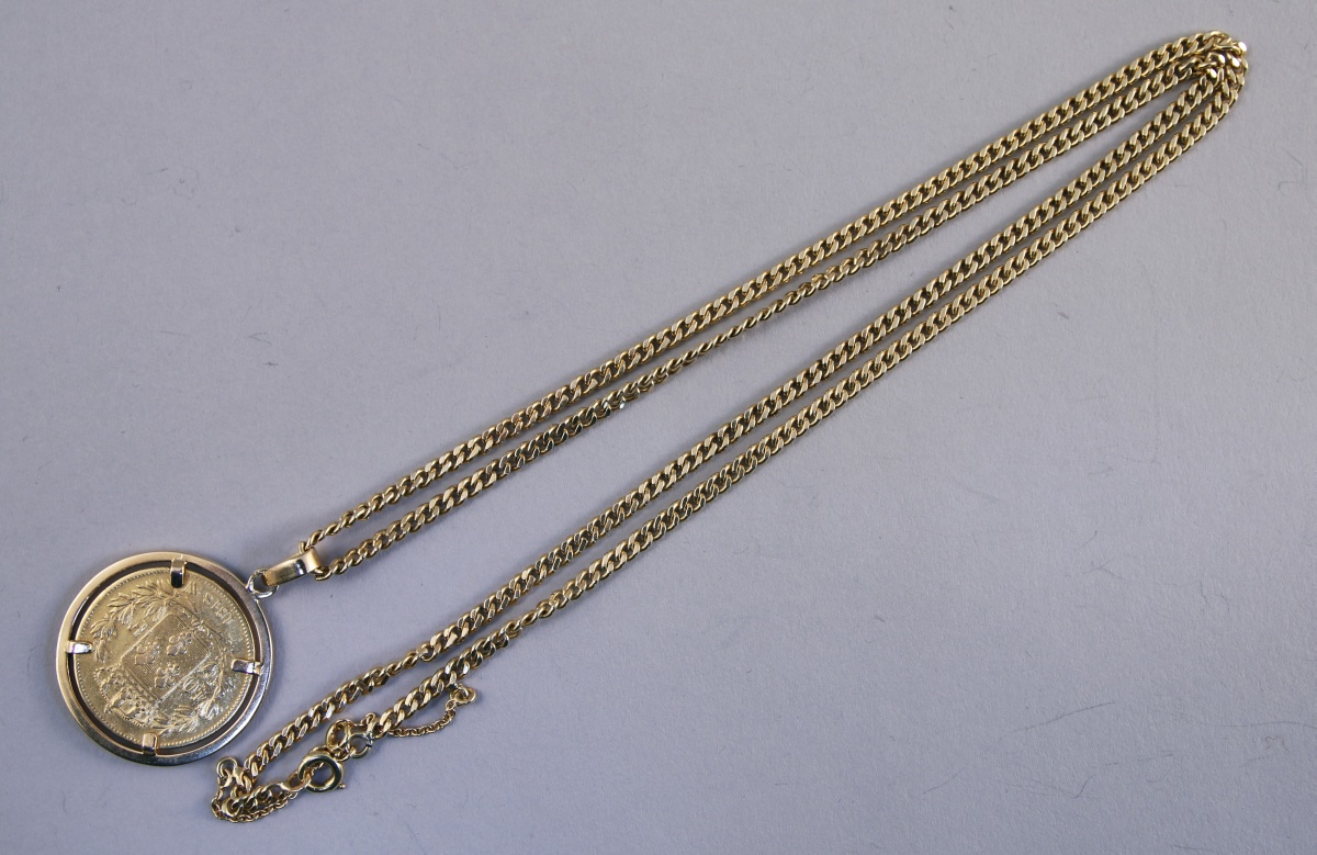 Important PENDENTIF en or jaune 18K orné d'une pièce de 40 FRANCS OR (Lille, 1818) au profil de Louis XVIII par Auguste-François Michaut.