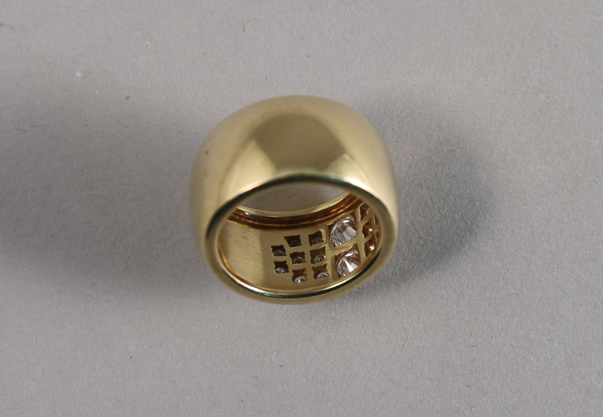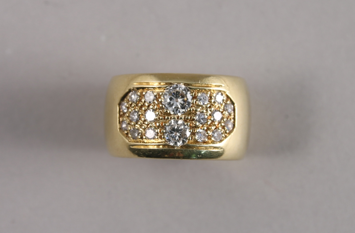 BAGUE en or jaune 18K centrée d'un cartouche de forme octogonale serti de 18 pierres blanches dont deux plus importantes.