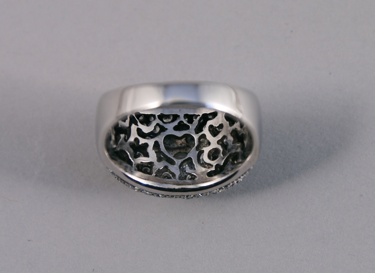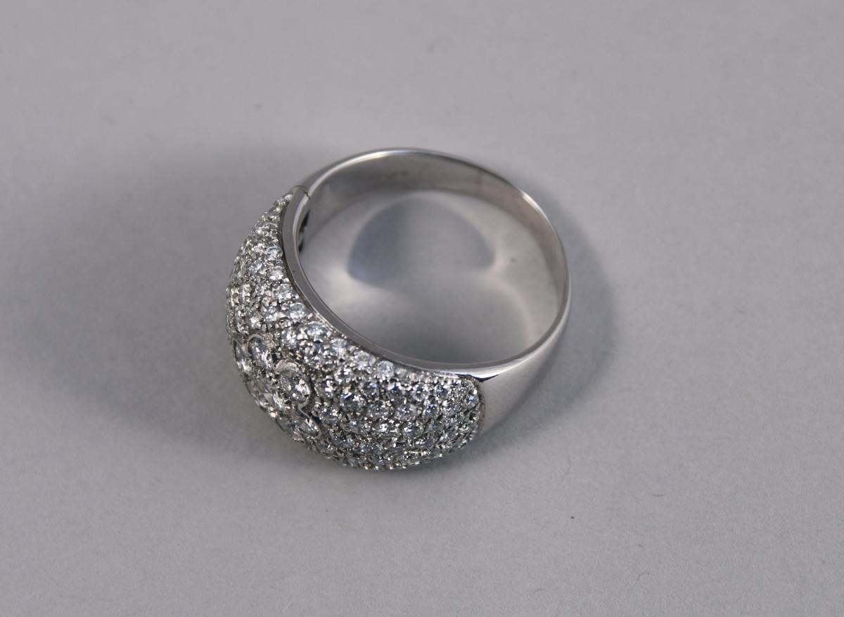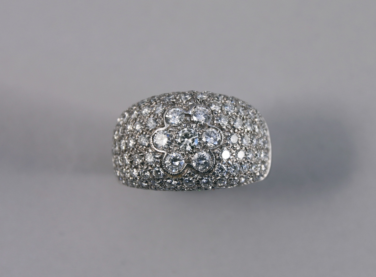 BAGUE en or gris 18K pavée de 117 BRILLANTS dont sept plus importants disposés en fleuron au centre.