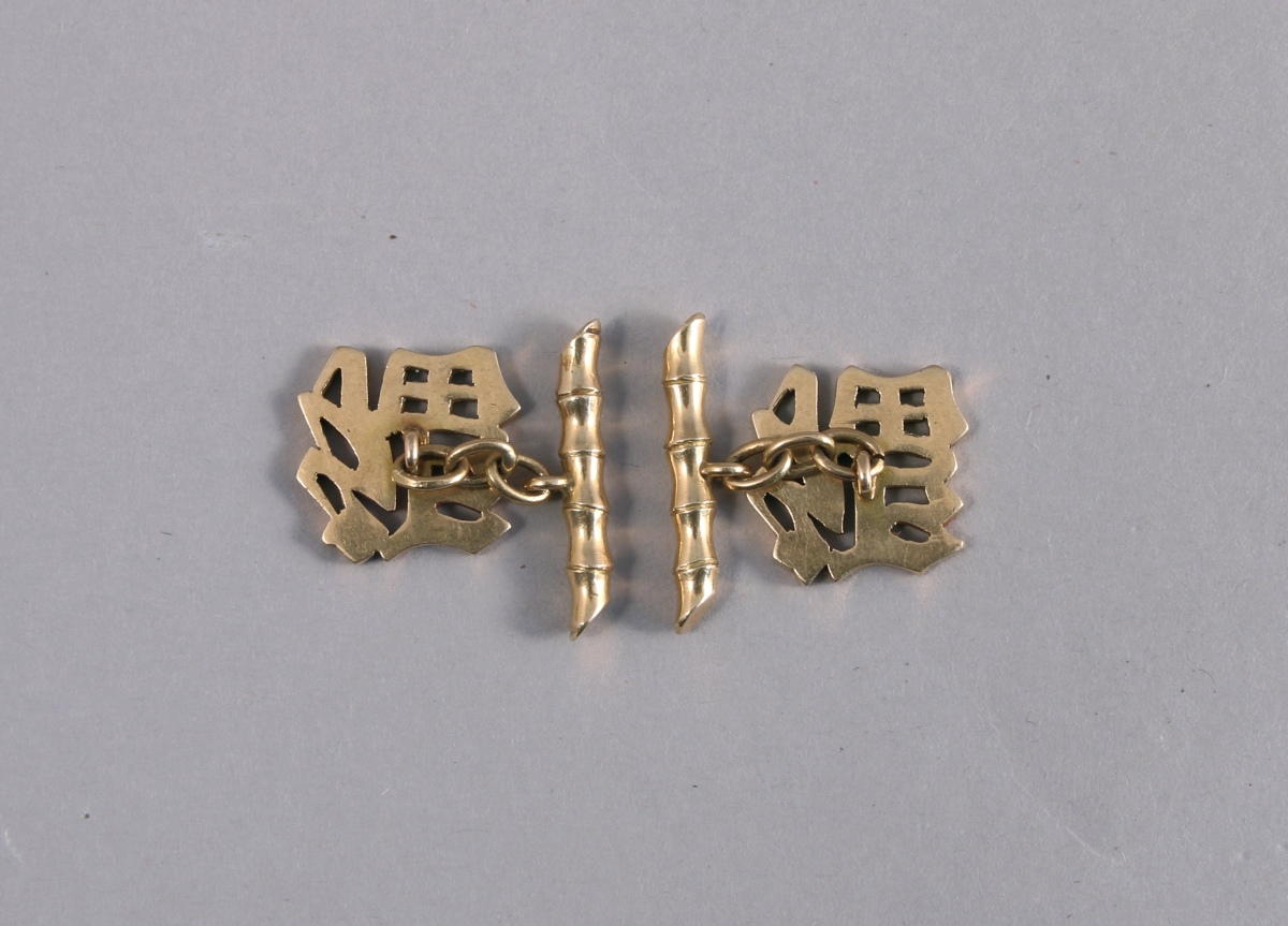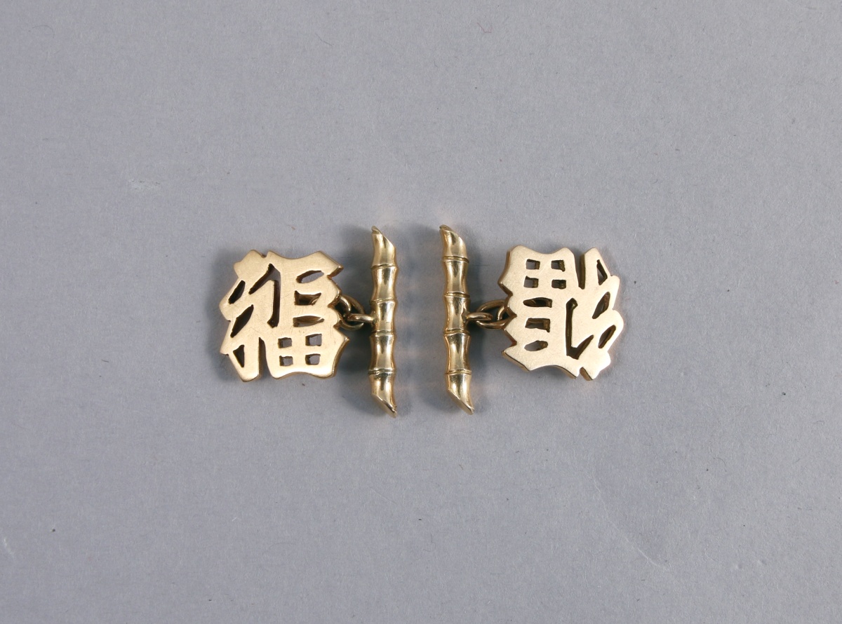 Paire de BOUTONS de MANCHETTES en or jaune composé d'un idéogramme chinois et d'un tige de bambou.