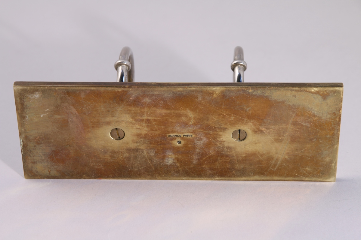 HERMÈS PARIS. PRESSE-PAPIERS PORTE-STYLOS en métal argenté sur une base de forme rectangulaire en métal doré.