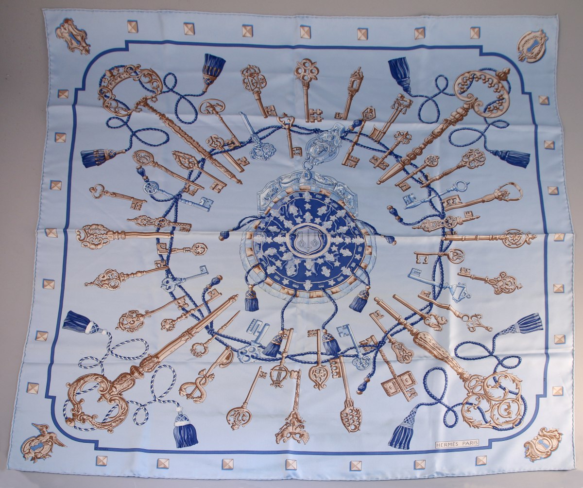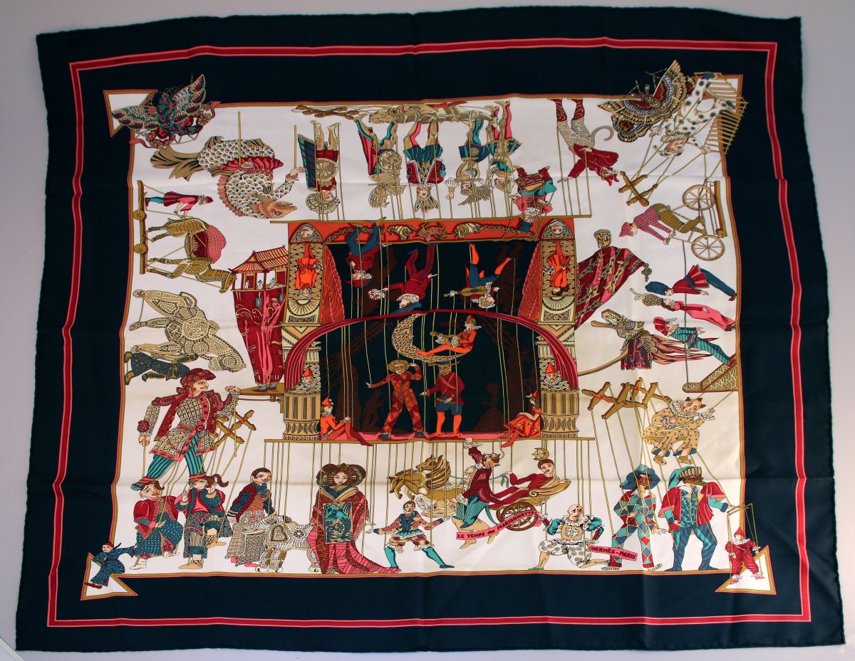 - Françoise GUÉRIN. CARRÉ en soie imprimée à décor de brides.