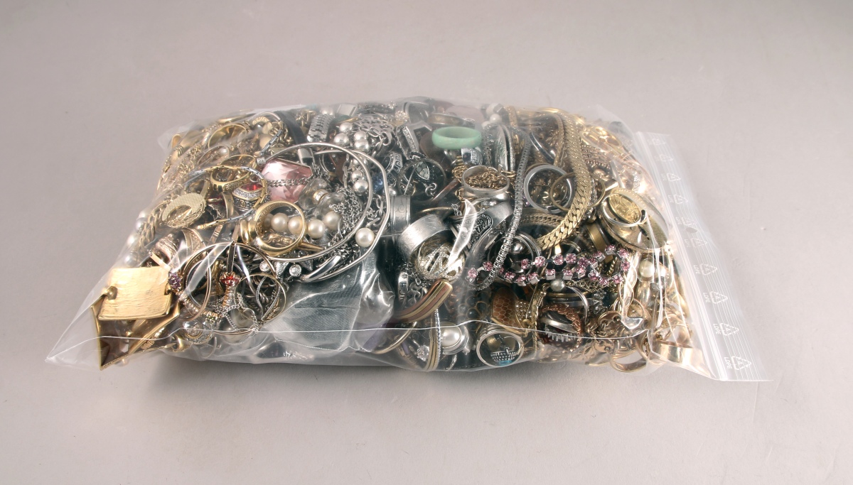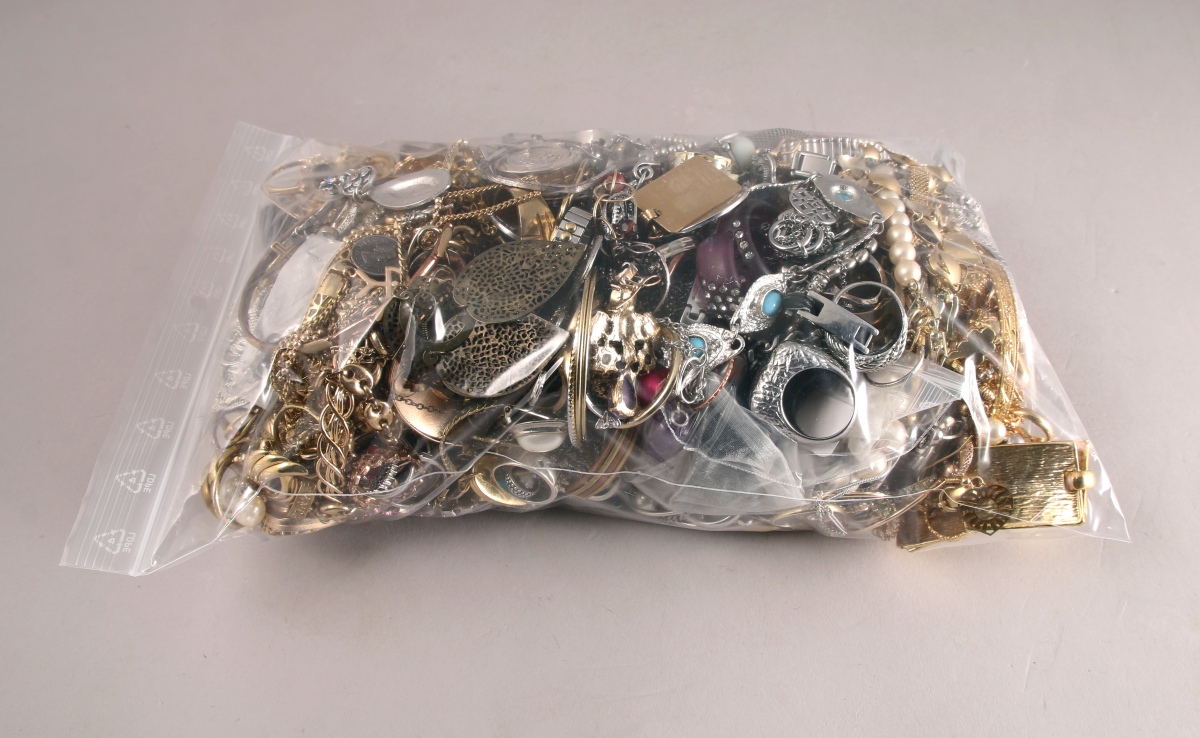 Importante RÉUNION de BIJOUX FANTAISIE dont : colliers, bracelets, pendentifs, bagues et boucles d'oreille. À découvrir, en l'état.