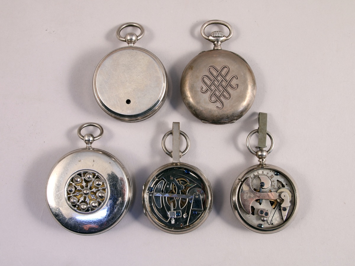 - 2 CHRONOMÈTRES en métal argenté dont un à sonnerie de LAFONTAINE à PARIS de forme ronde, cadran, les indexations de temps en chiffres romains.